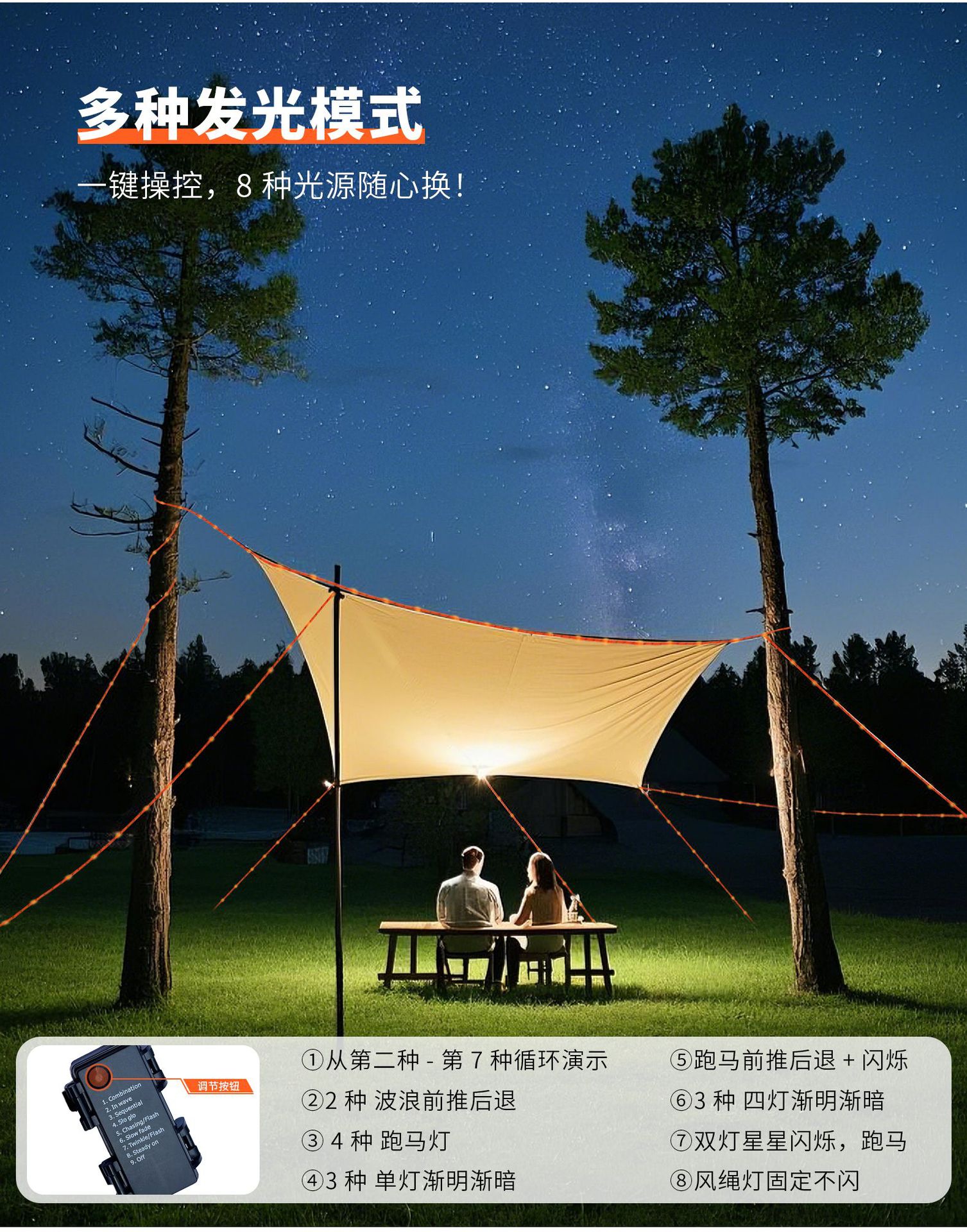 屋外発光風ロープライトキャンプキャノピー転倒防止警告ロープテントロープ雰囲気ライトクロスボーダー供給卸売
