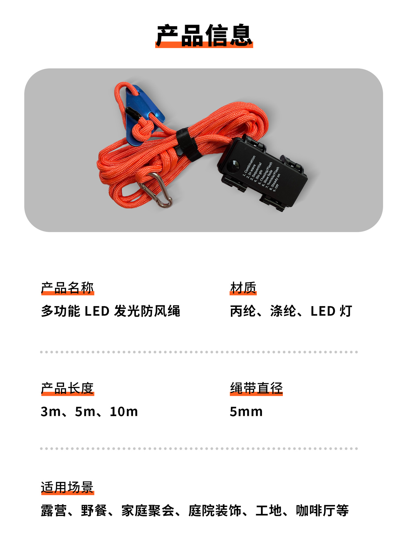 アウトドアキャンプ発光防風ロープテント雰囲気ライトクロスボーダーキャノピー警告灯ロープ低電圧発光風ロープライト