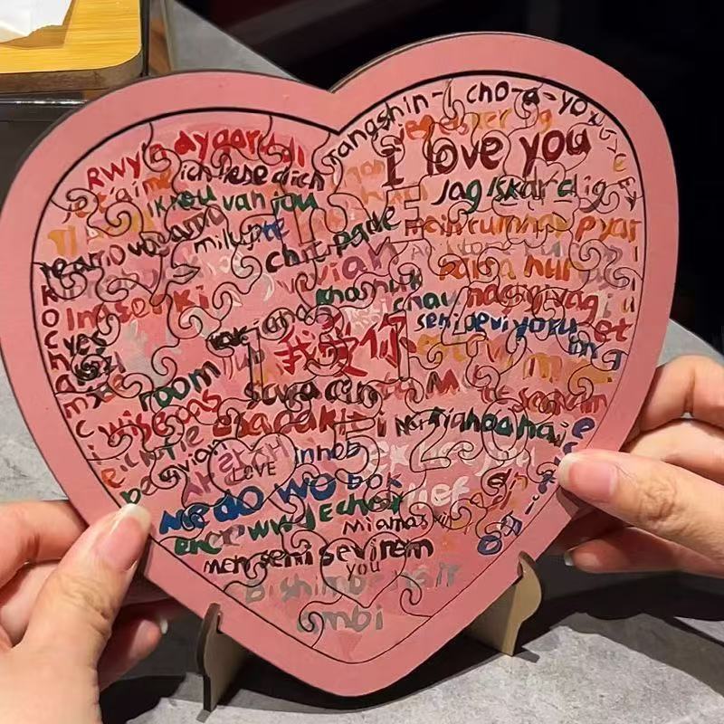 diy手工情人节礼物100种语言我爱你生日快乐心形木质爱心拼图创意