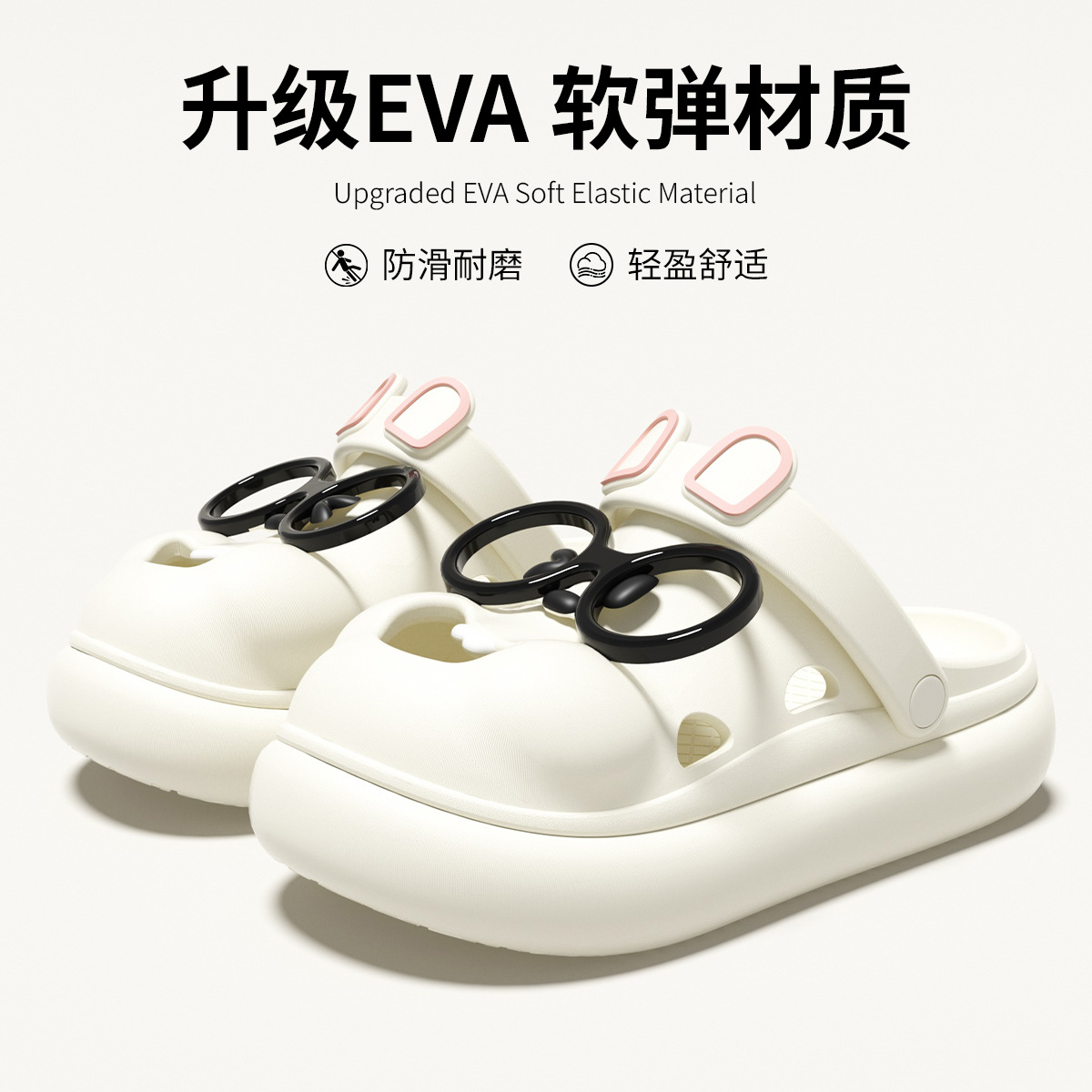 洞洞鞋女生夏季可爱眼睛兔耳朵增高厚底踩屎感防滑包头凉拖鞋外穿