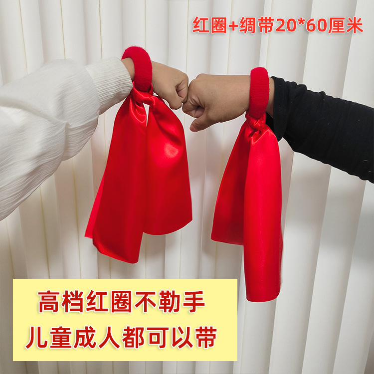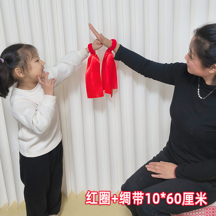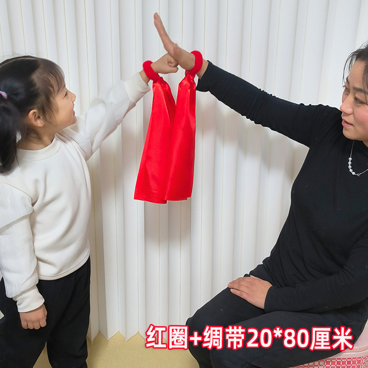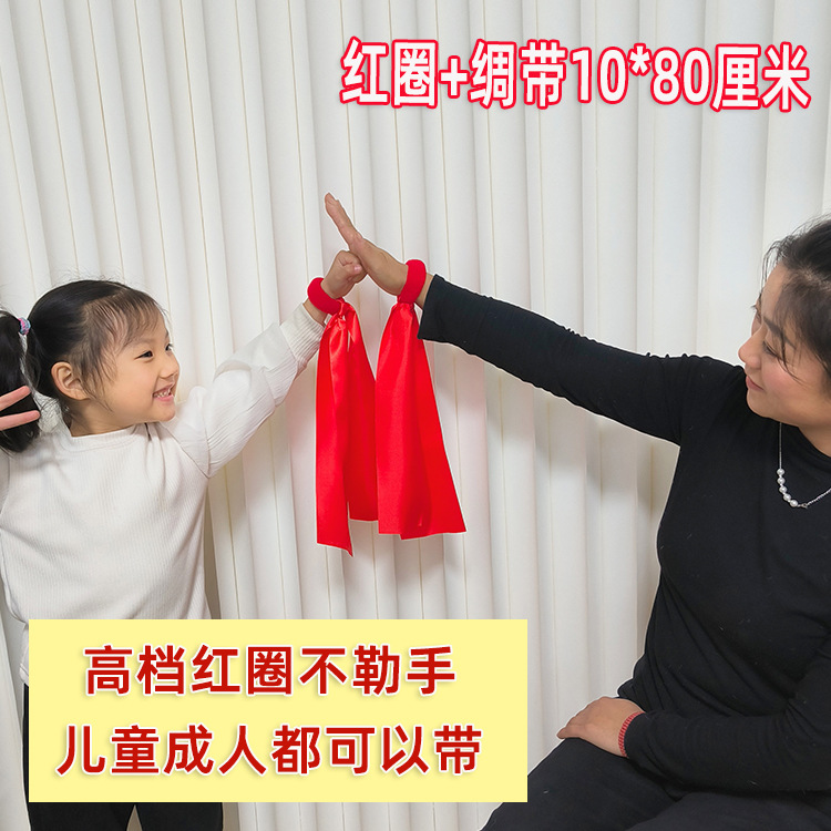 幼稚園大人と子供のための赤いリボン朝の体操赤いサークル弾性リングブレスレットリボン小道具ダンスパフォーマンス