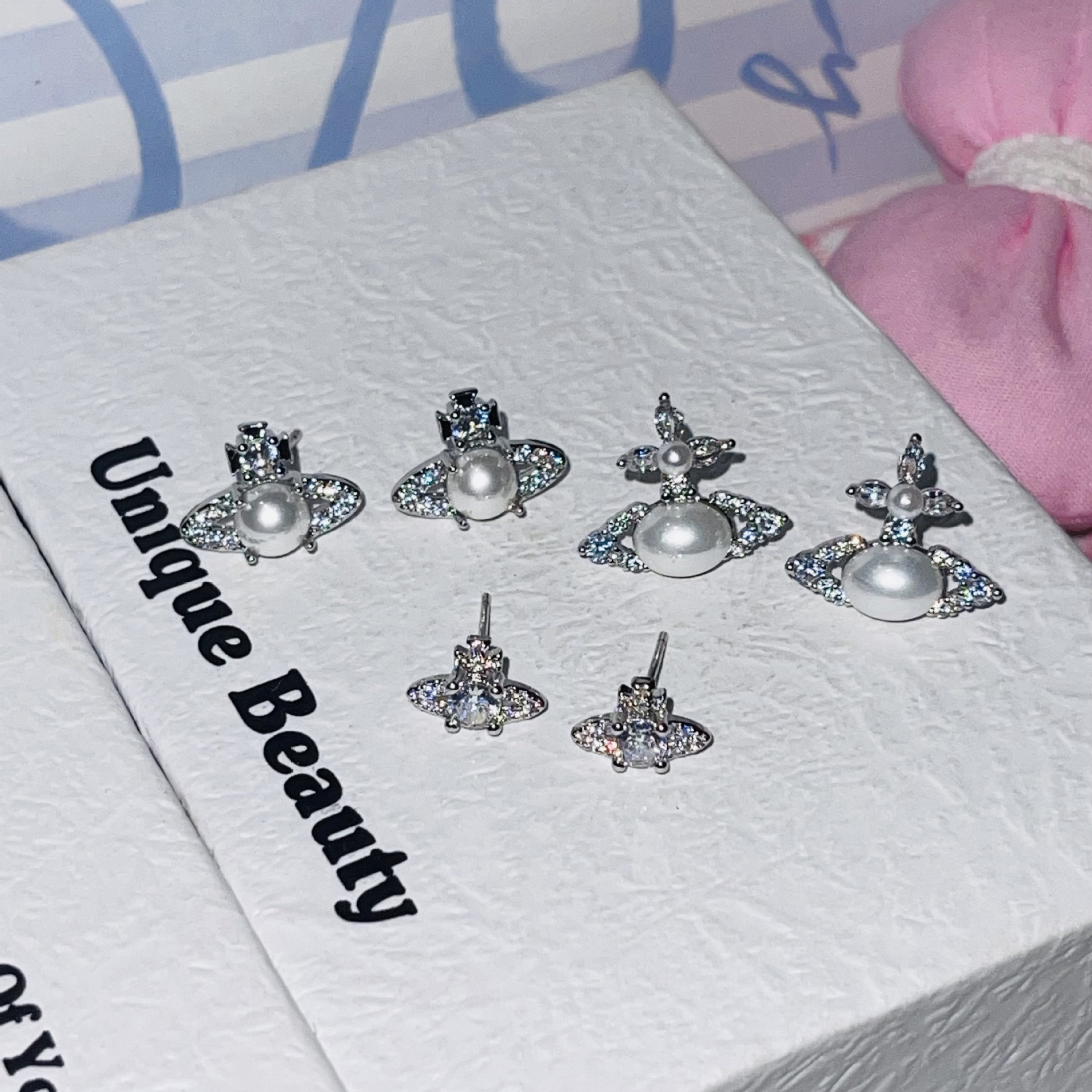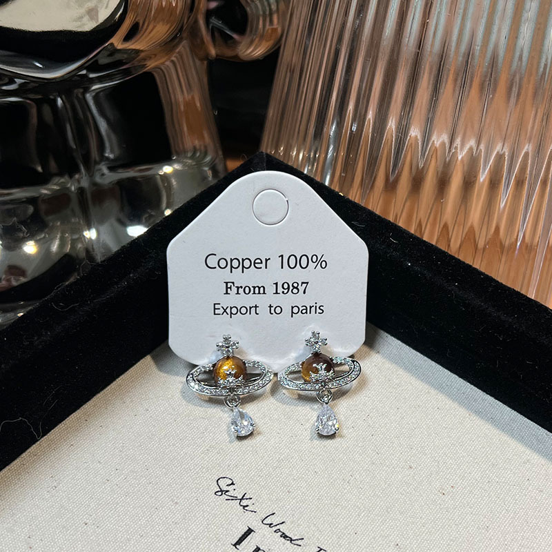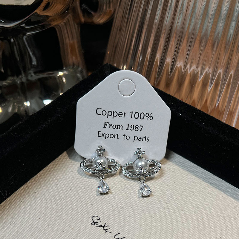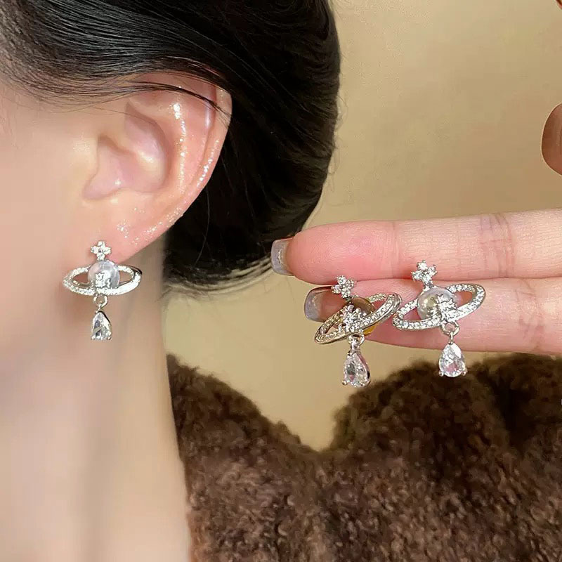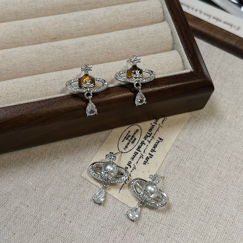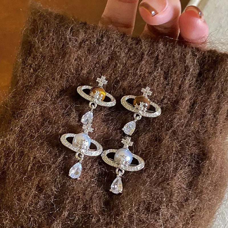 ヨーロッパとアメリカの人気のパールイヤリング宇宙土星マイクロダイヤモンドイヤリング女性用 S925 シルバー針ハイエンドパーソナライズされた人気のイヤリング