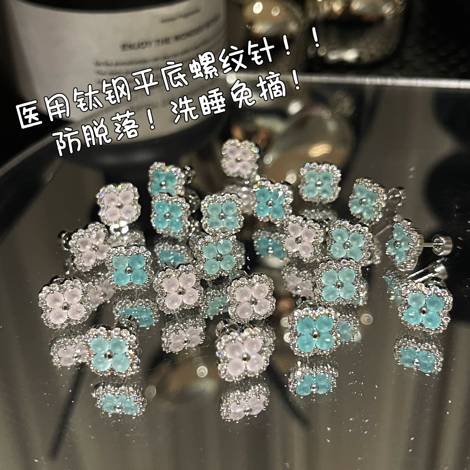 ミントのマンボの緑の蛋白の四つ葉のクローバーのピアスの精緻な小さいジルコンの四つ葉のクローバーの平底のねじは寝て摘み取らないでください。
