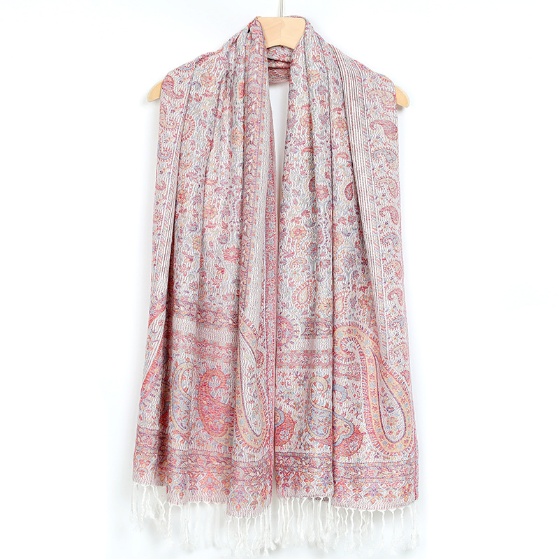 クロスボーダースカーフエスニックスタイルジャカードカシュータッセルショール春と秋の新作コットンレディースロングスカーフラップターバン