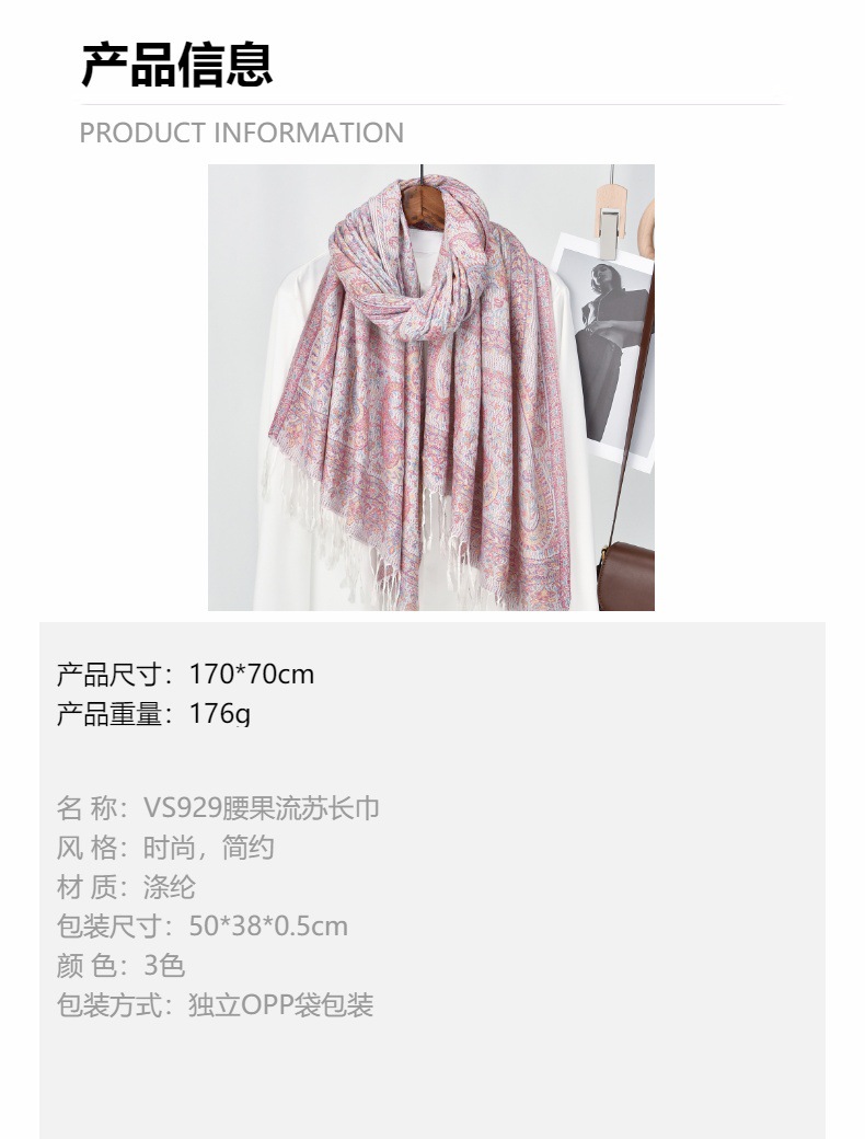 欧美热销经典爆款涤纶腰果流苏长巾百搭时尚女士高级外搭披肩围巾