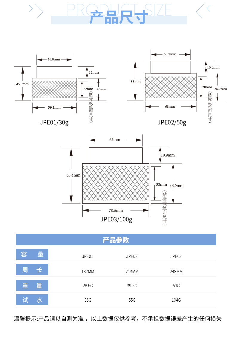 仕様とモデル 30G;ホワイト;PP,50G;ホワイト;PP,100G;ホワイト;PP