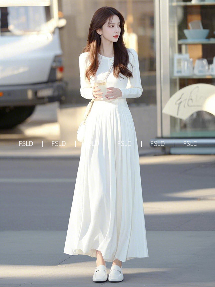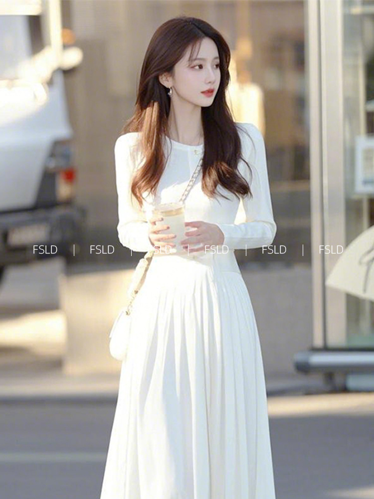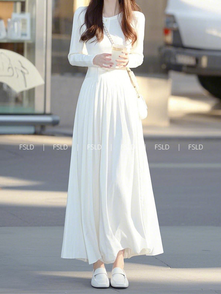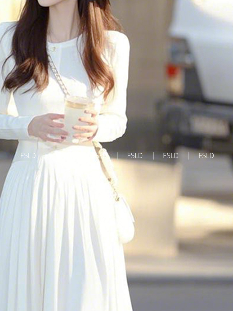 4095 重要な行事に出席するためのコートの着こなし、白い長袖ワンピース、春の新作、軽やかな高級感