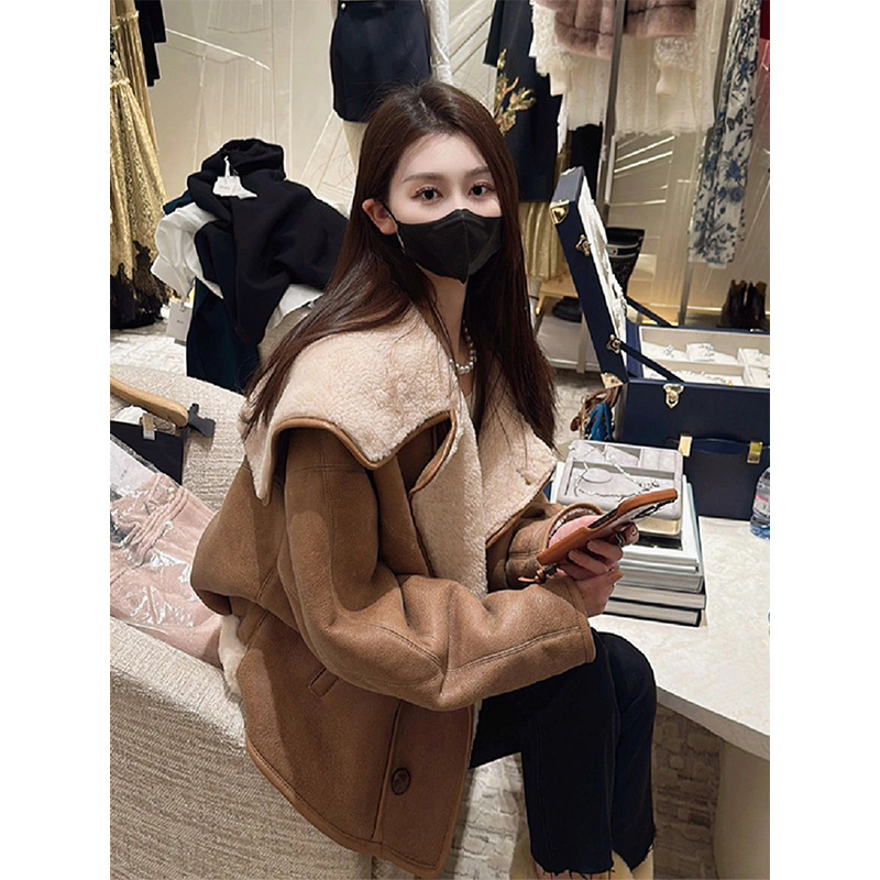秋冬の今年は綺麗なカレー色が流行しています。毛皮一体羊のカバーコート女性の新型の爆発金は1647です。