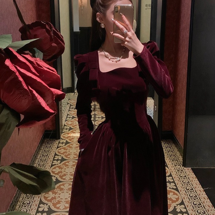 高級感は普段は敬酒服を着られます。花嫁の結婚当日は私服でドアに戻ります。赤いベルベットのワンピース1700