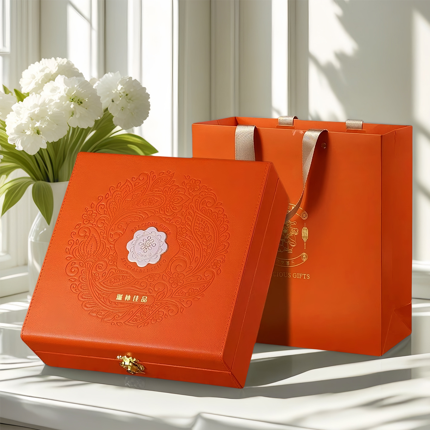 燕窩包装箱空箱オレンジ円形皮箱100グラム250グラム滋補品乾杯高級乾燕窩礼箱