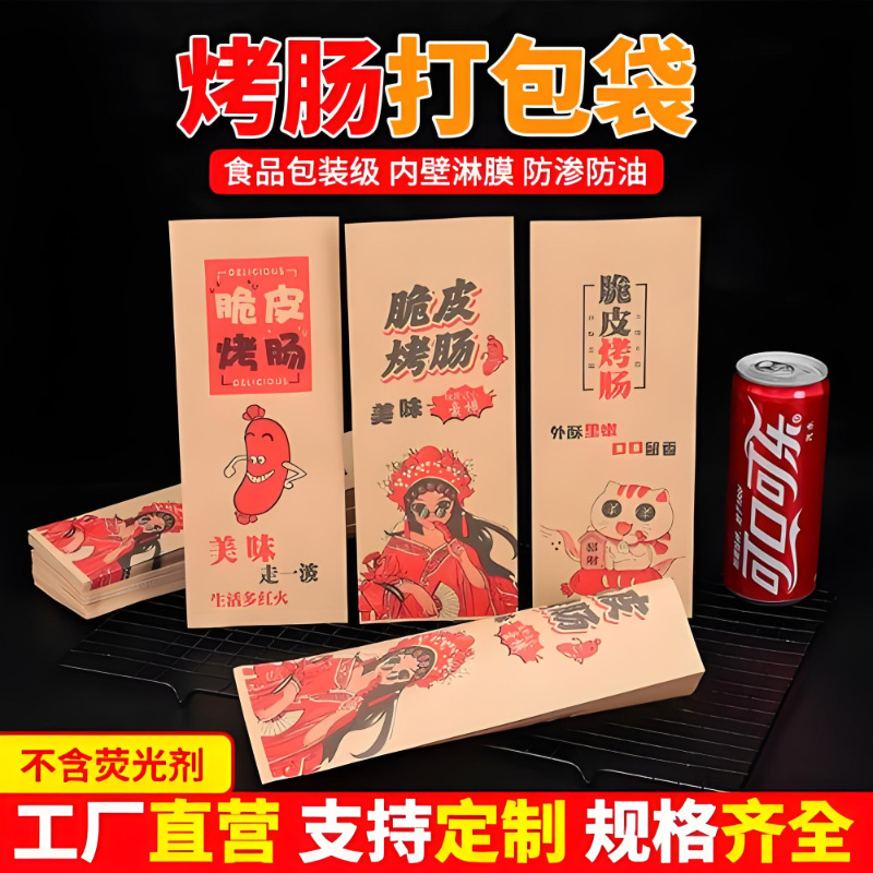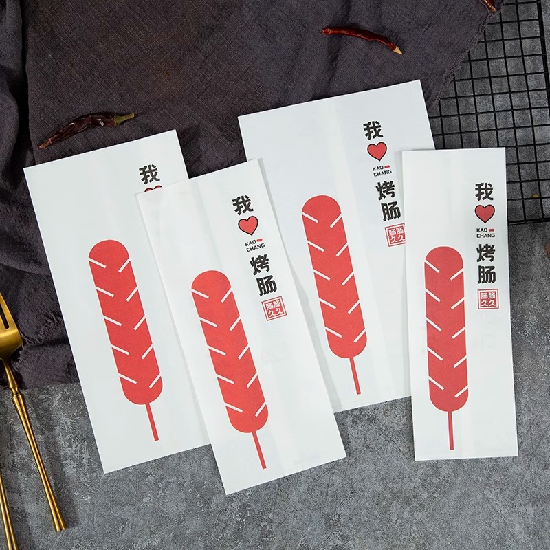 ソーセージ耐油紙袋クラフトコーティング紙デンプンソーセージ串バーベキュー麩食品テイクアウト包装カスタマイズ