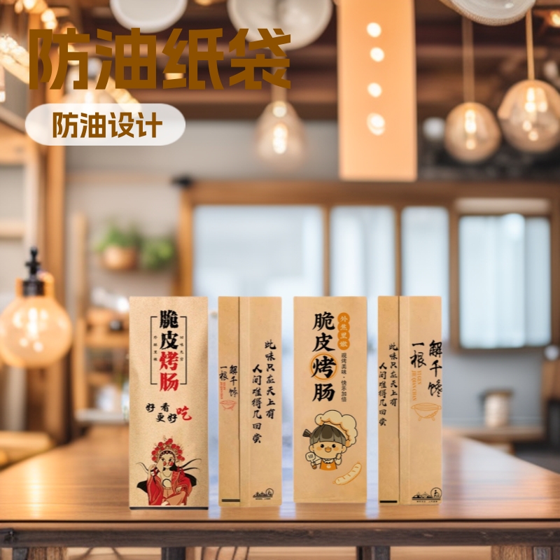 カリカリ焼き腸、粉腸、耐油包装袋、粉腸ホットドッグ、ハム腸、チーズ腸、牛皮紙袋、カスタムメイド