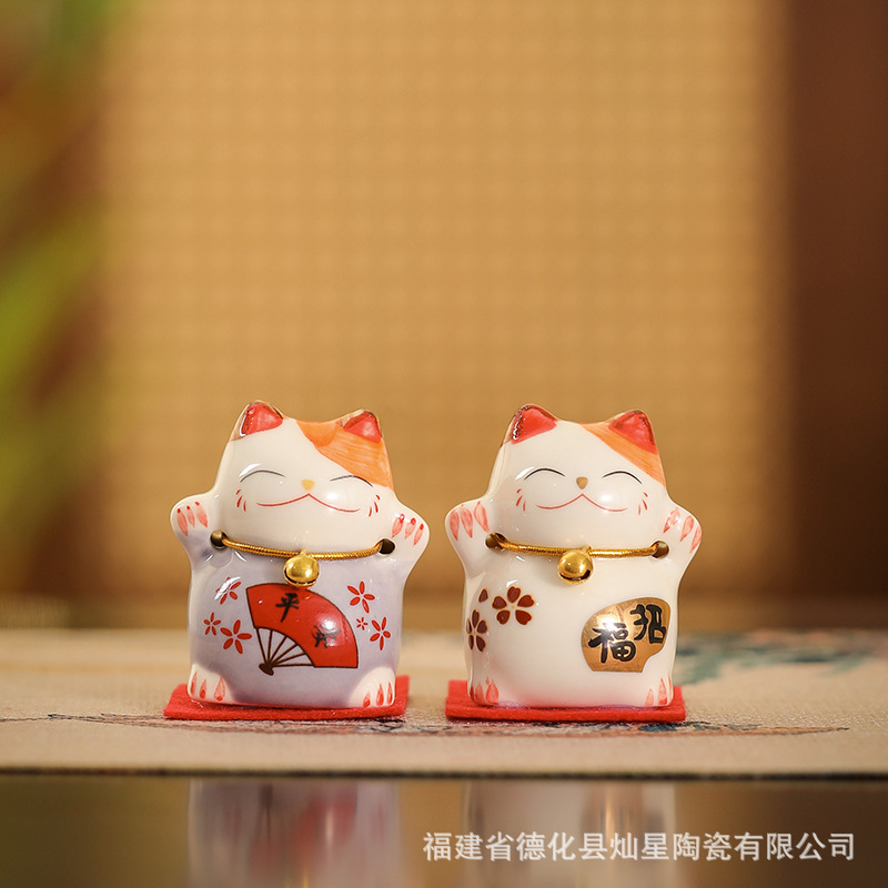 かわいい招き猫が日本式猫の装飾品を飾っています。