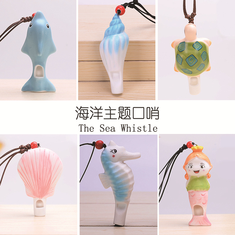 創意的な陶磁器の口笛のネックレスの漫画の小さいホイッスルはサザエのイルカの海馬の貝殻の海星の海洋の記念品を掛けます。
