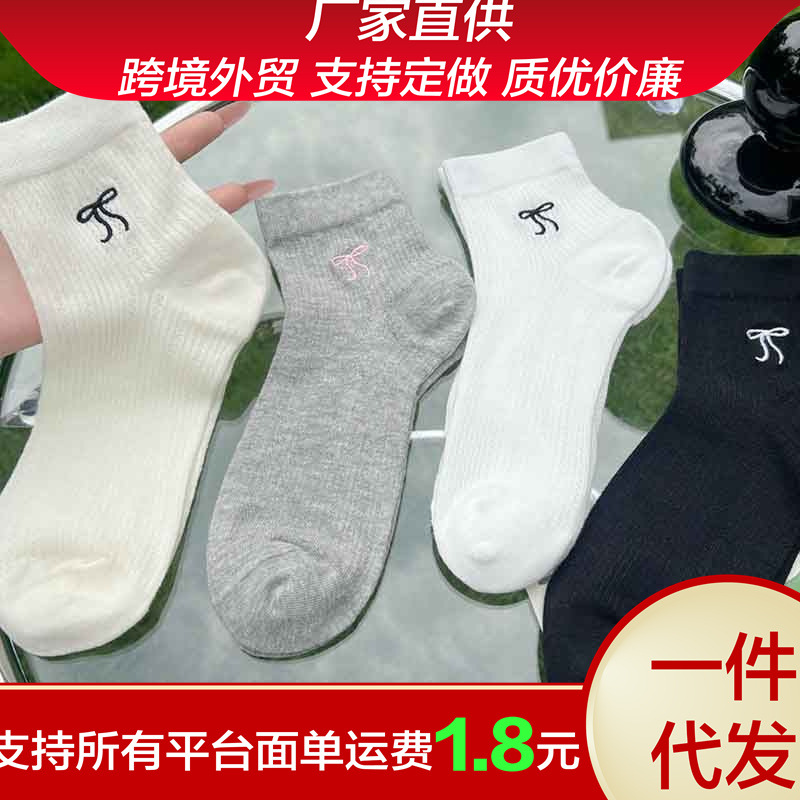 夏の骨のない靴下の薄い女性の蝶結びの靴下の夏の透かし彫りの黒い白い灰色のiu風の純綿の糸は汗を吸います。