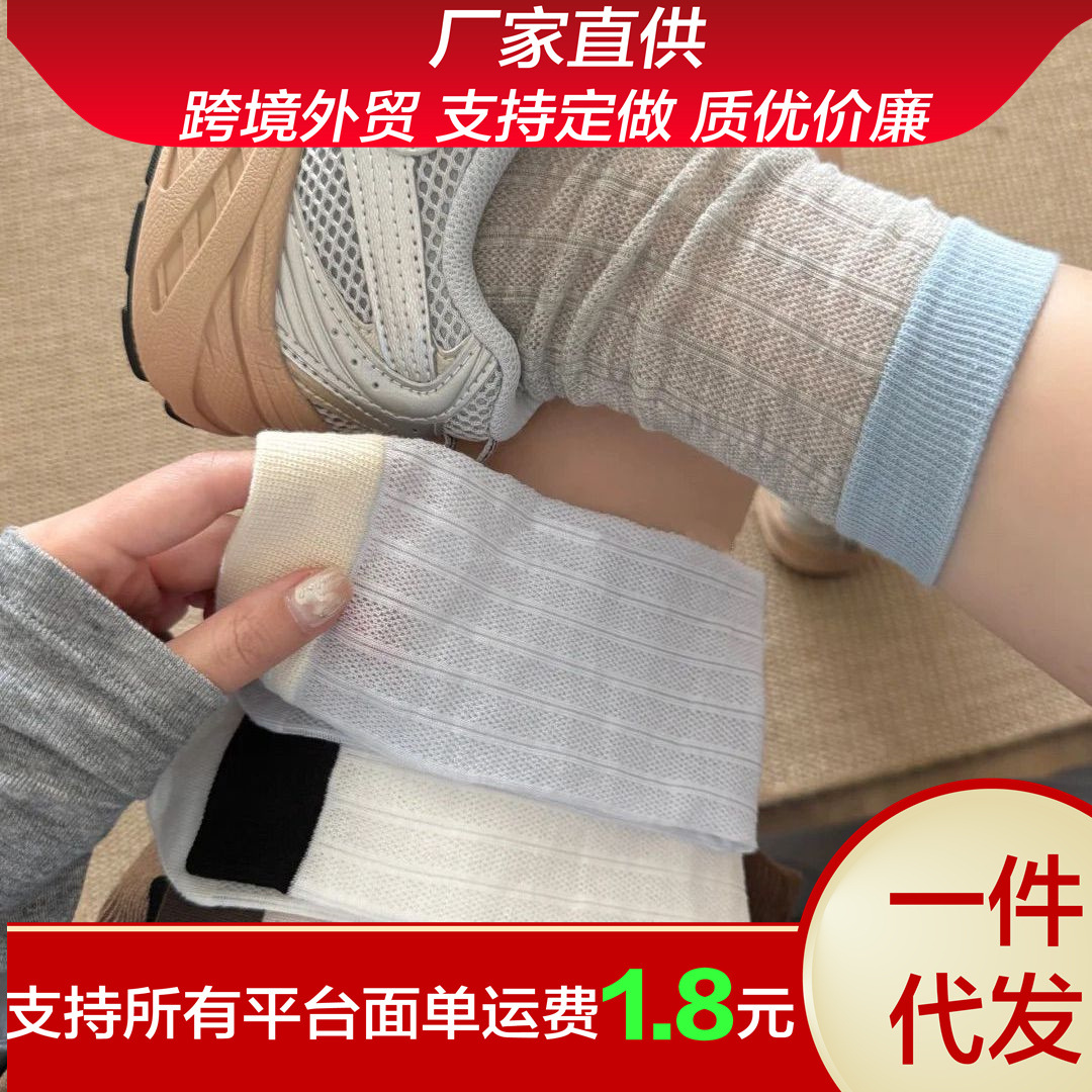 【一件代发】夏用通気性のある防臭吸汗ミッドカーフソックス、女性用無地薄手アイスソックス、春秋用