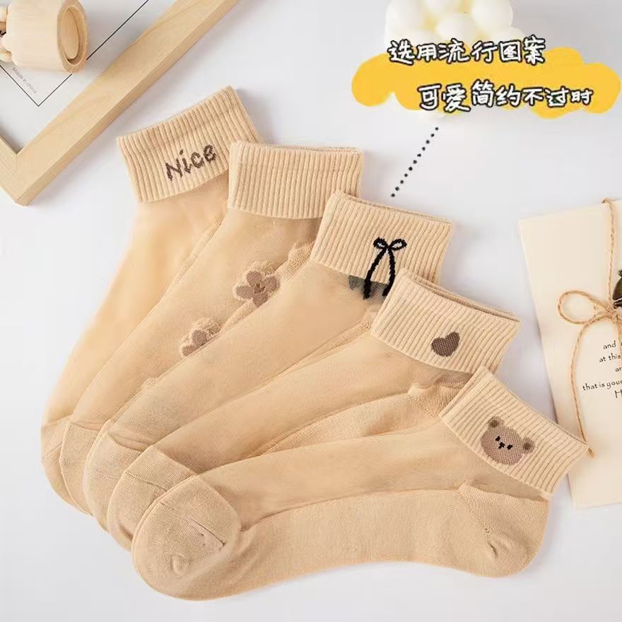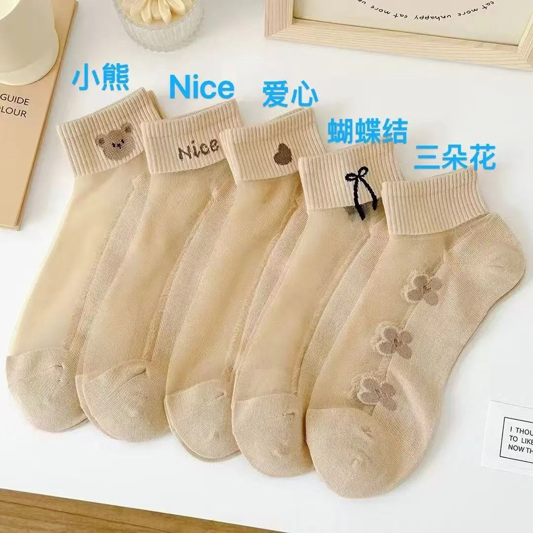 袜子女春夏水晶丝袜短筒船袜棉底吸汗透气卡通ins透明女士丝袜