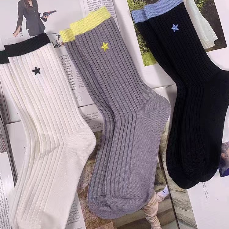 韓国の小さな星の刺繍は色を合わせて通気性の靴下を作ります。
