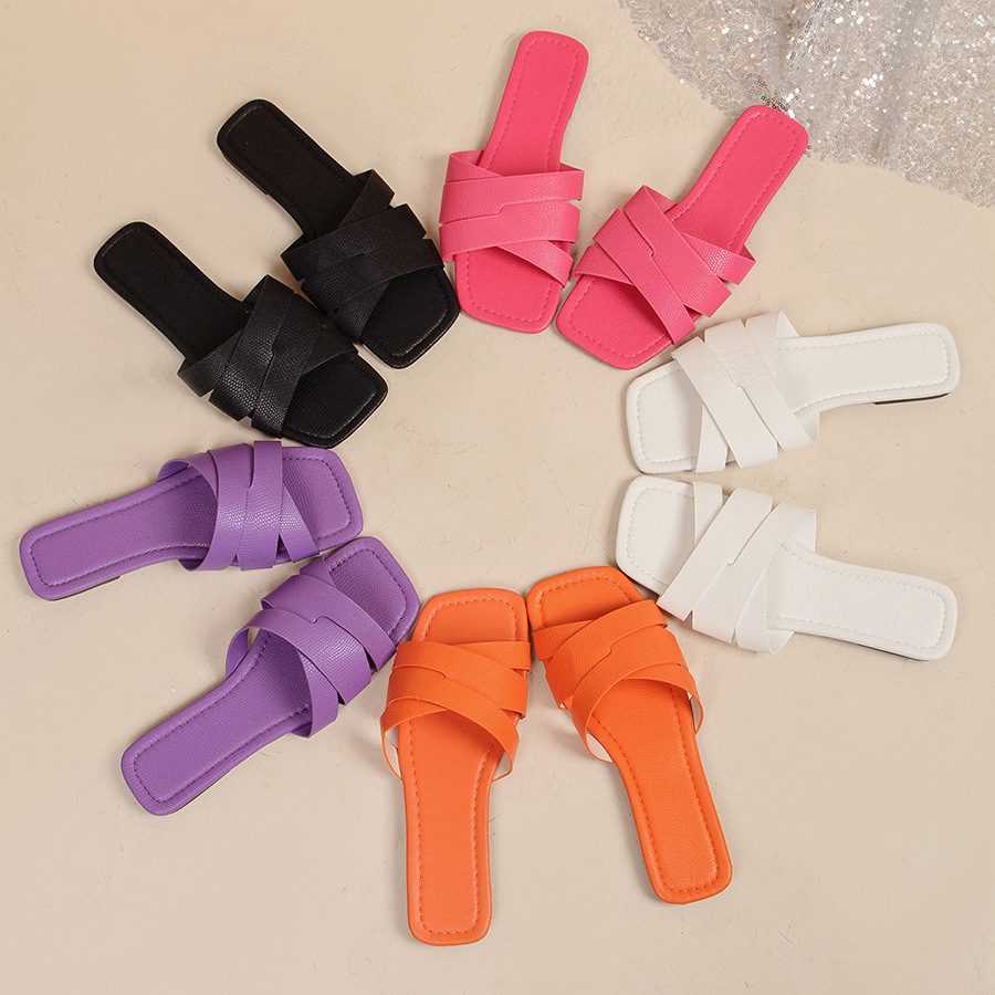 2025年夏新作、クロスボーダー対応、フラットでスクエアトゥのレディースサンダル。欧米風の大きいサイズ、カジュアルでファッショナブル、快適でどんなスタイルにも合うサンダル。