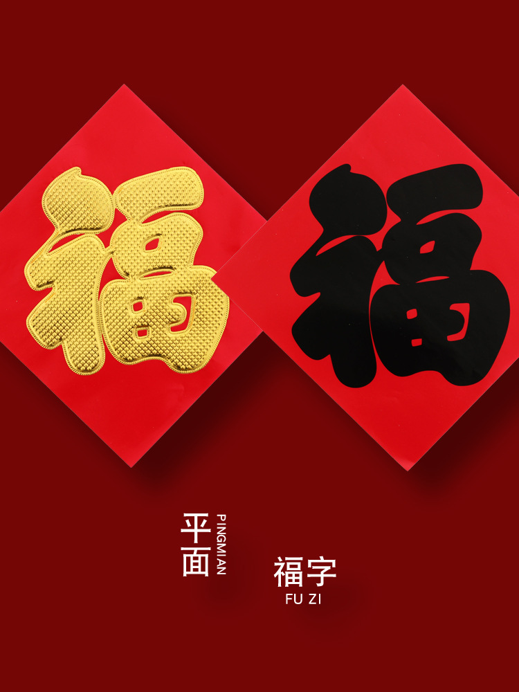 2025蛇年福字門貼り書道箔押し金大平面福金字黒字招財入宝旧正月年画