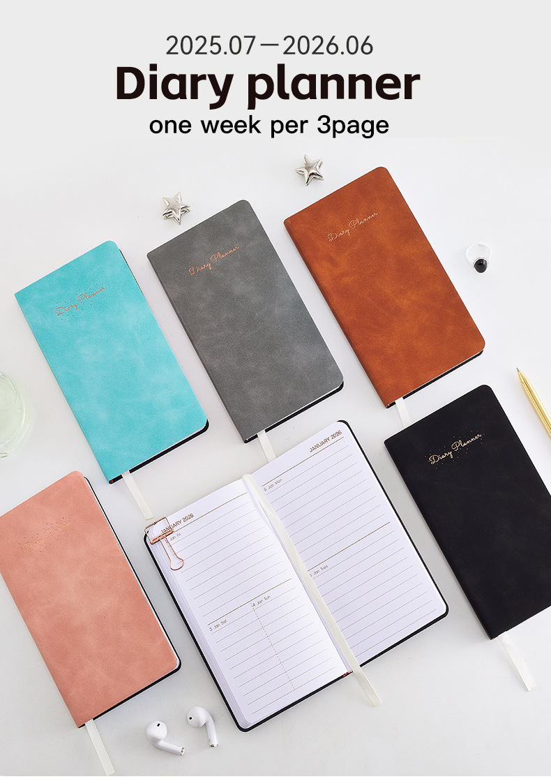 アマゾンA6皮面一週間三面周暦精装スケジュール本模造皮面ポケット周暦スケジュール計画本