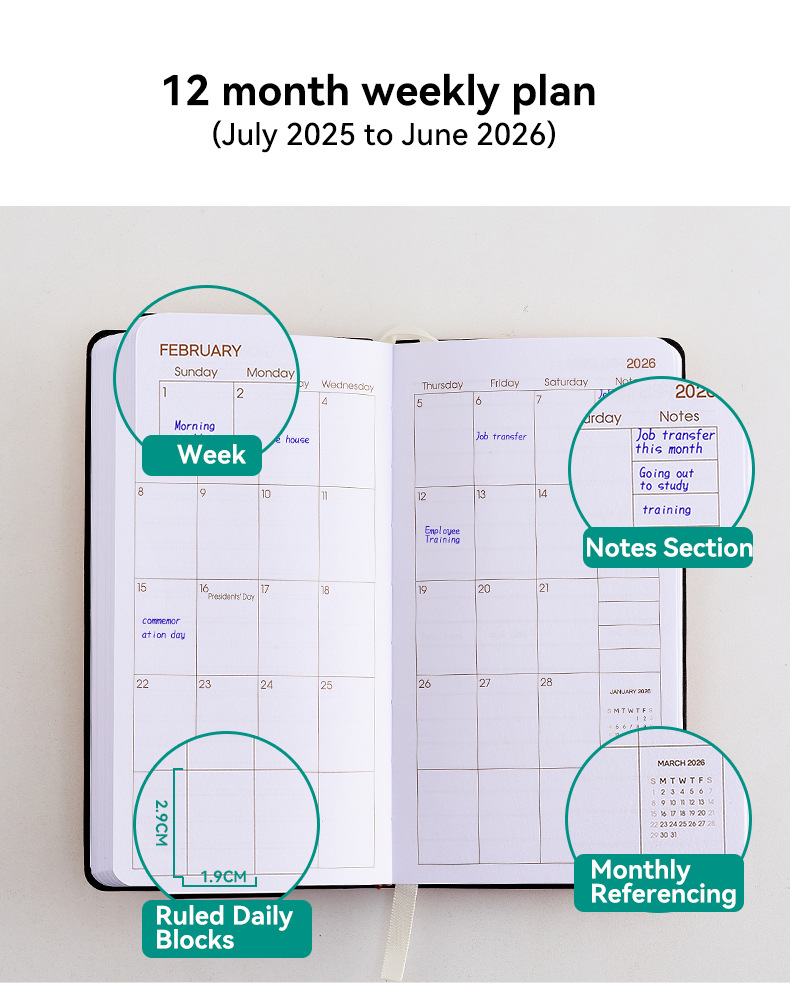 Amazon 2026-2027 プランナー スケジュール帳 18ヶ月 イミテーションレザー 英語年鑑 週間カレンダー ノート
