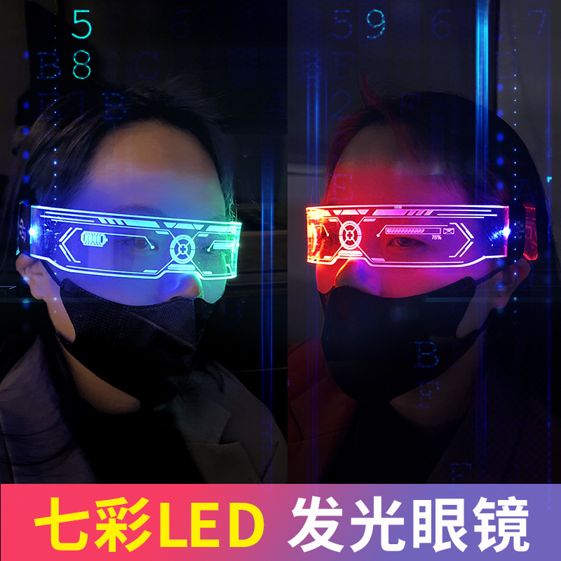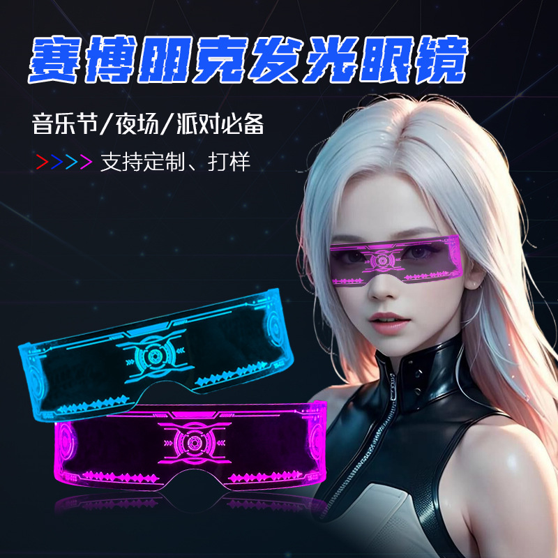 赛博朋克七彩发光眼镜科幻酒吧蹦迪科技感表演道具朋克发光眼镜