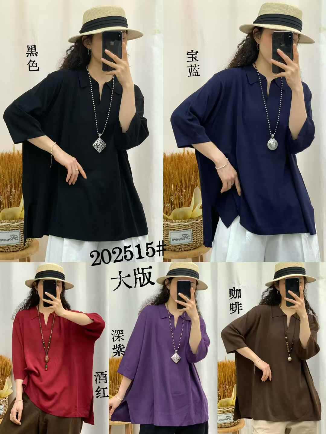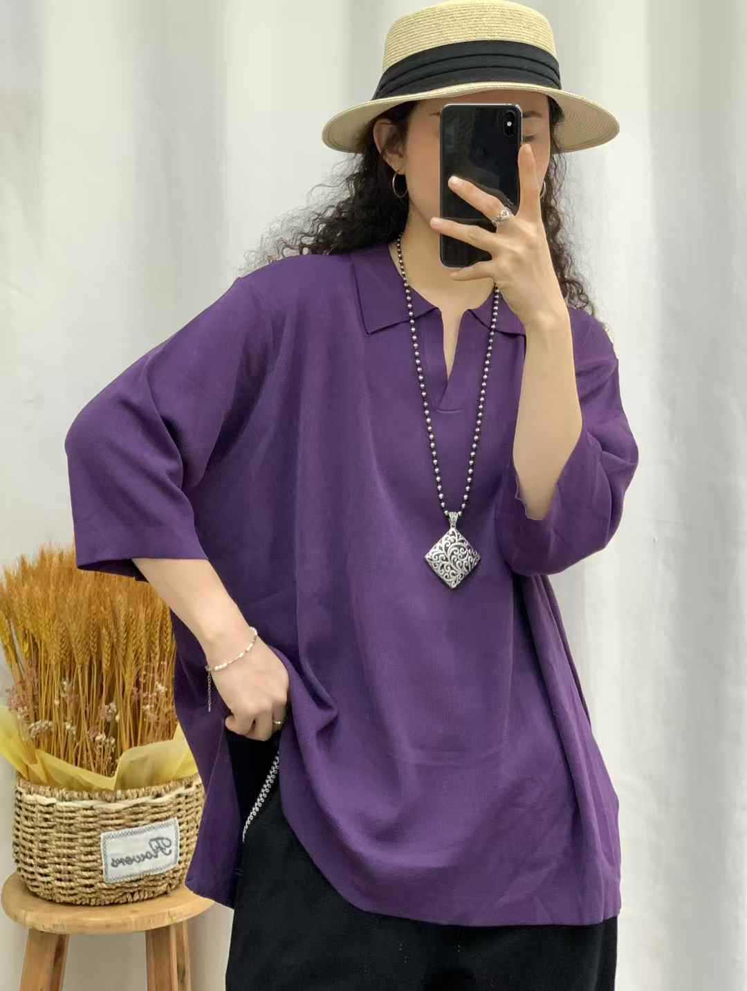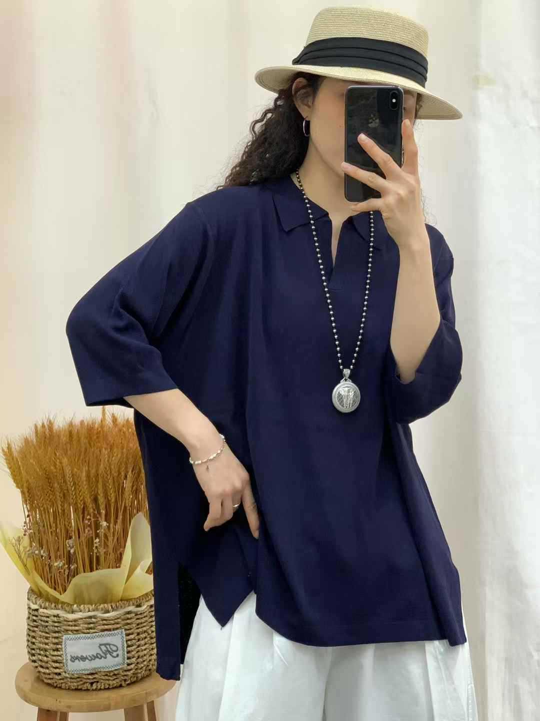 Ed3626二重綿麻丸襟開筒シャツ2024新ゆるい大サイズカジュアルtシャツ底上着女