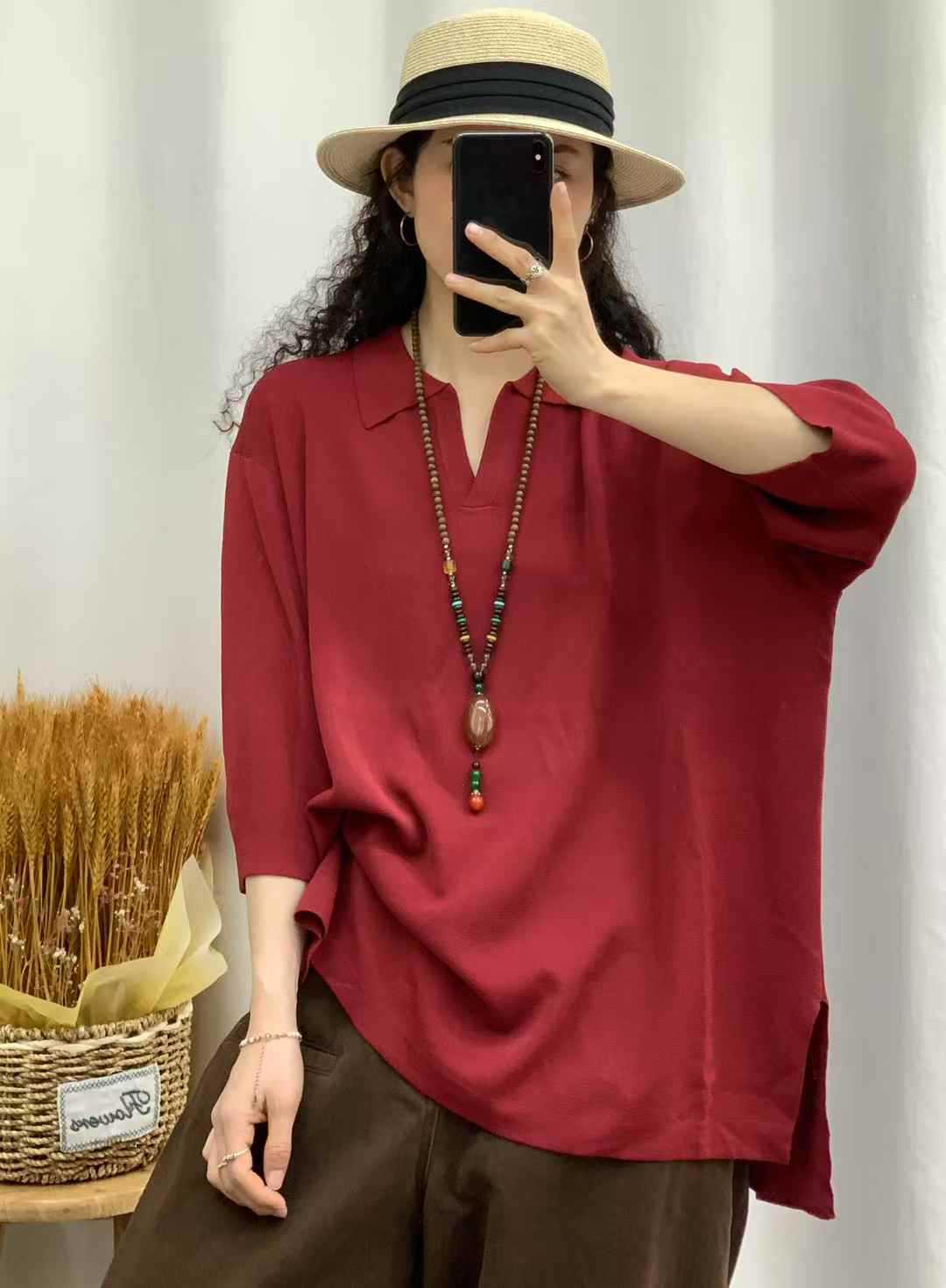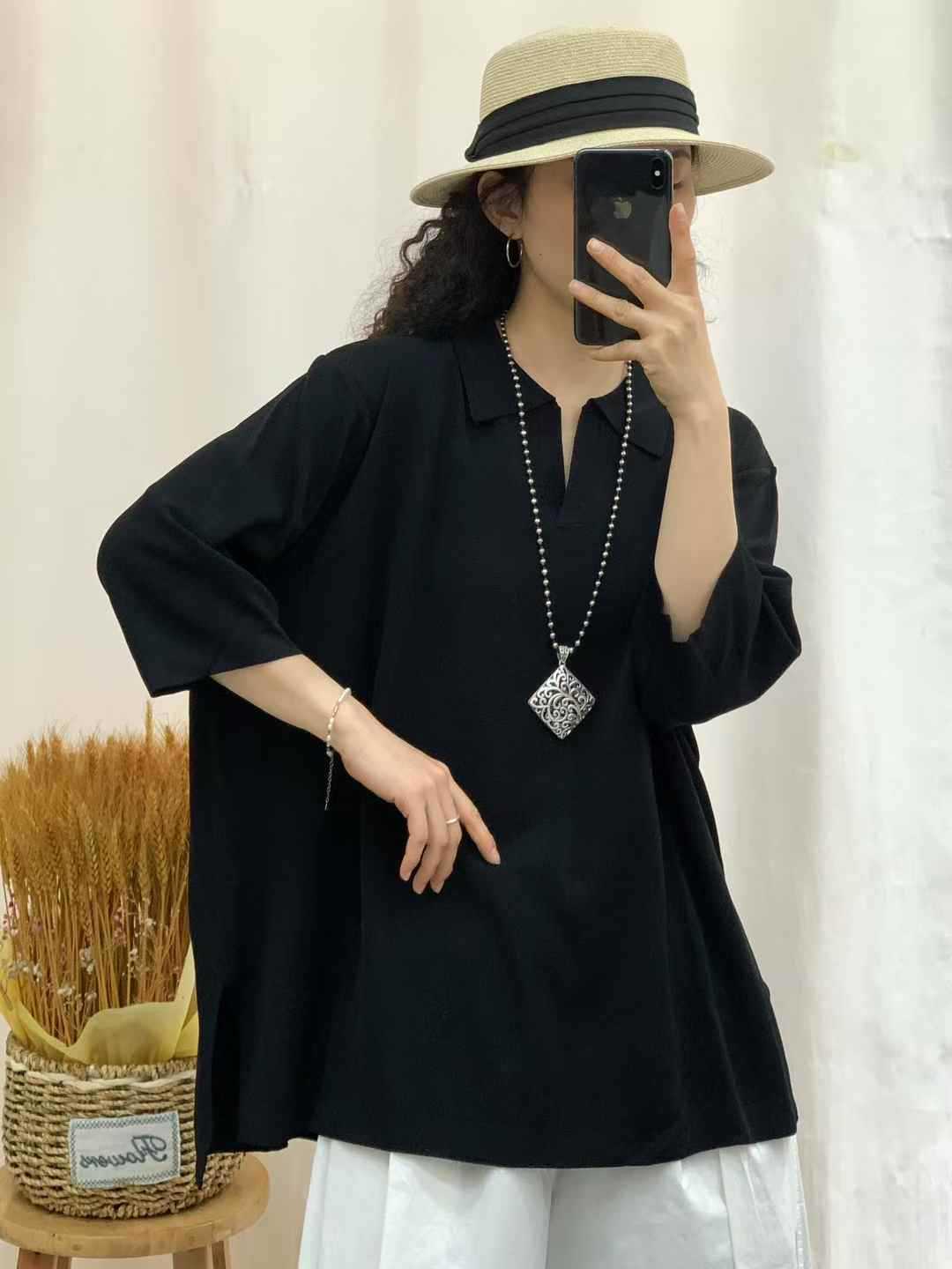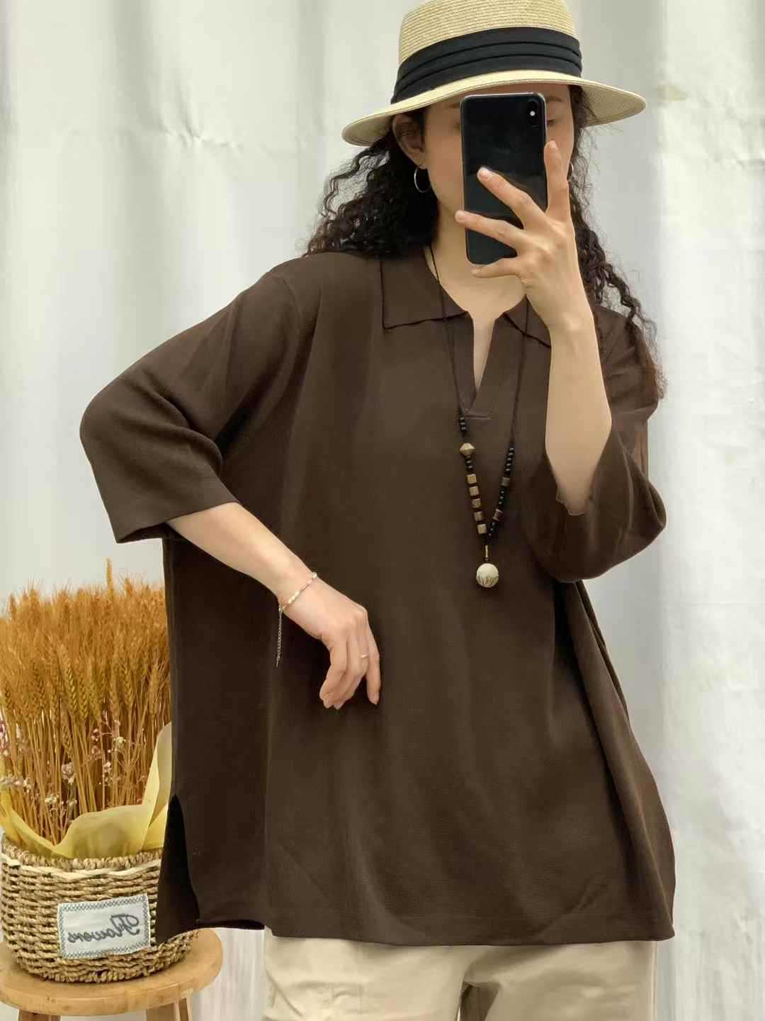 Yy202515純色vネック中袖ニットtシャツ2025春夏新作カジュアル百合肉が痩せて見える上着の女性