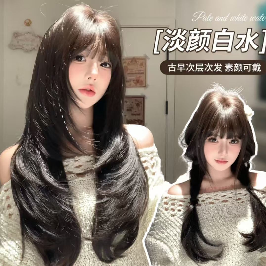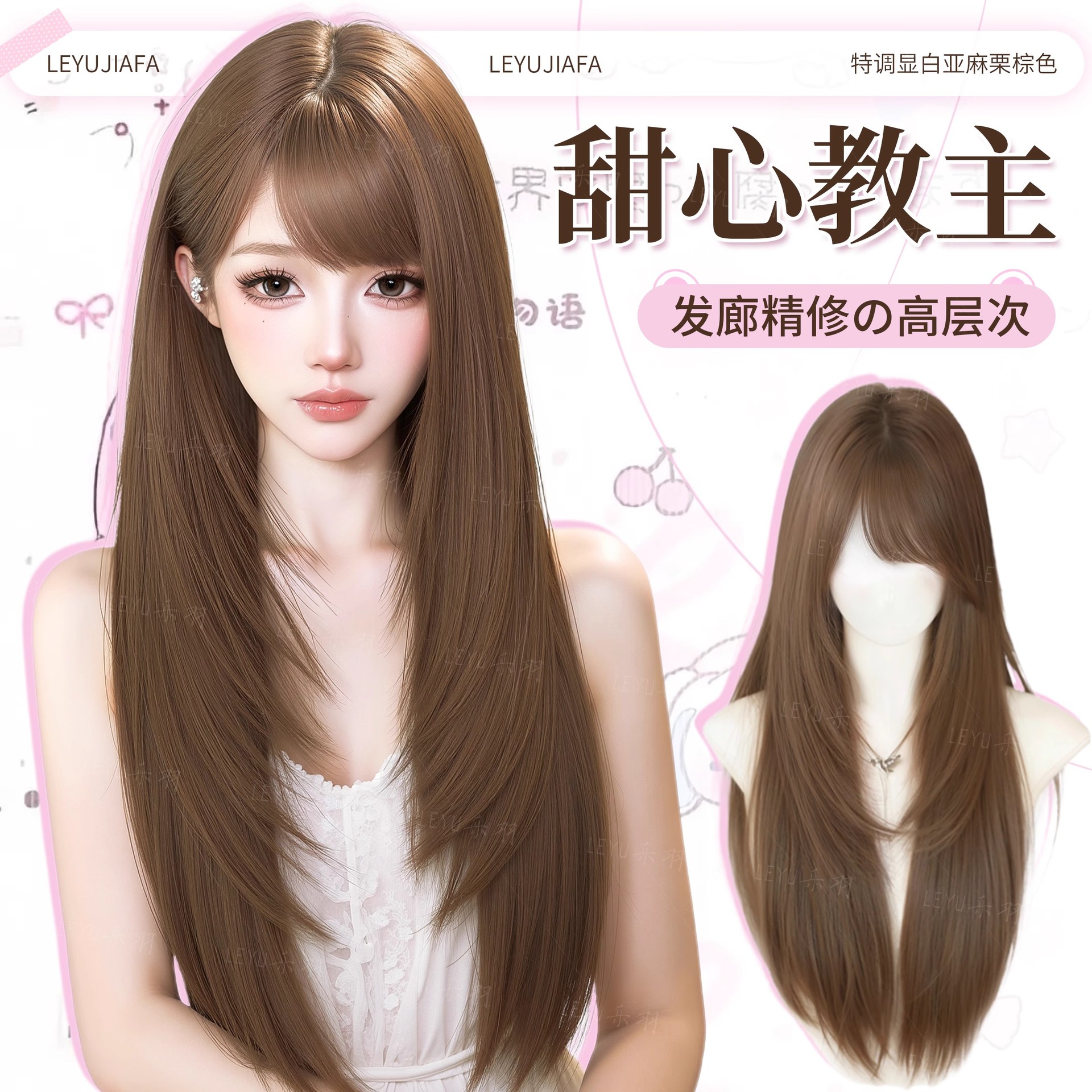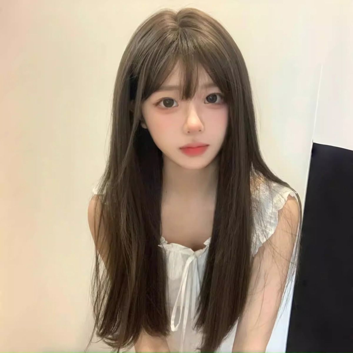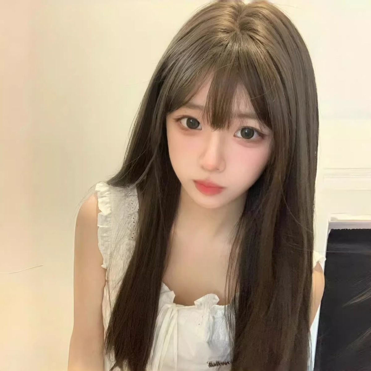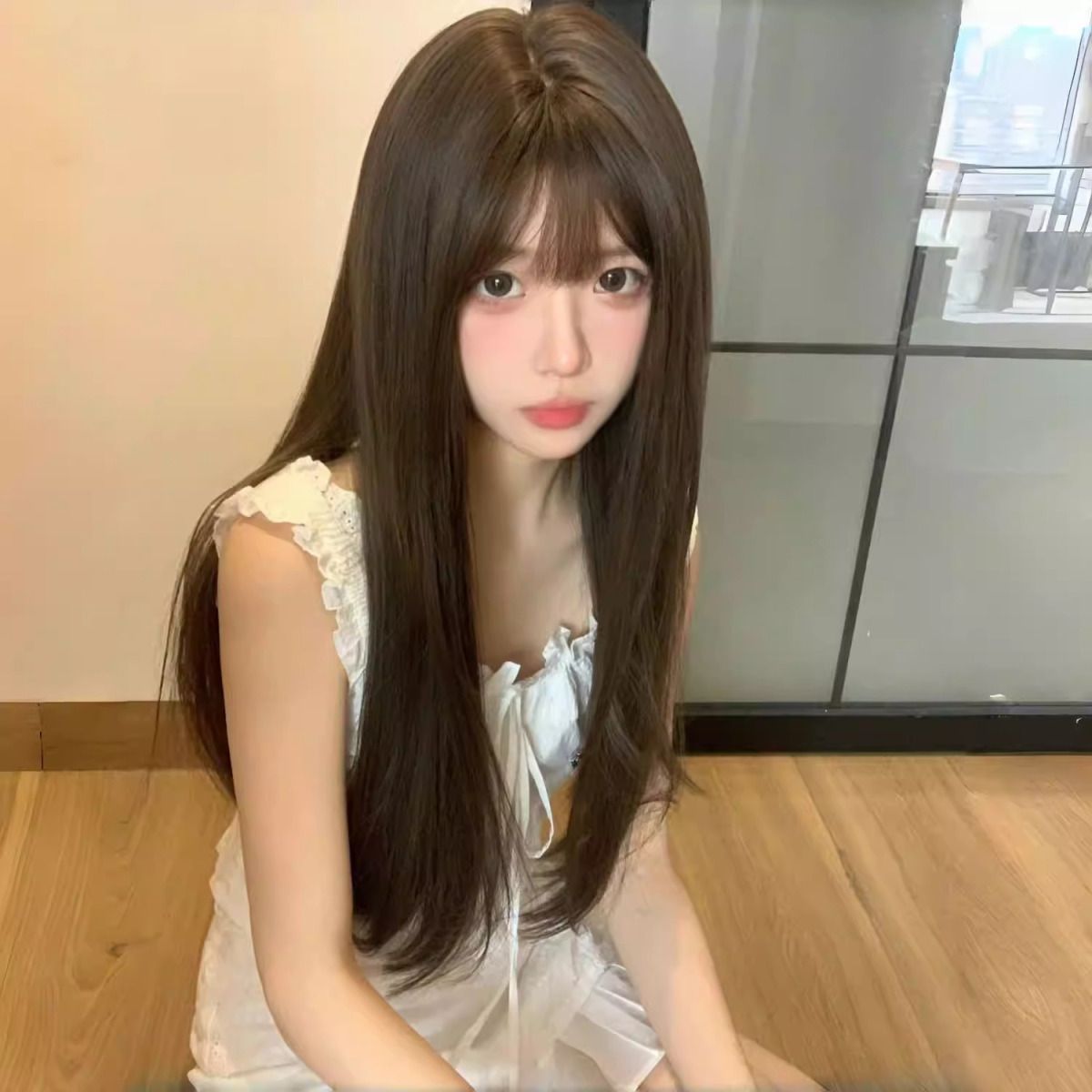 假发全头套女精修高层次黑茶色长直发 Lolit 刘海时尚整顶全头套