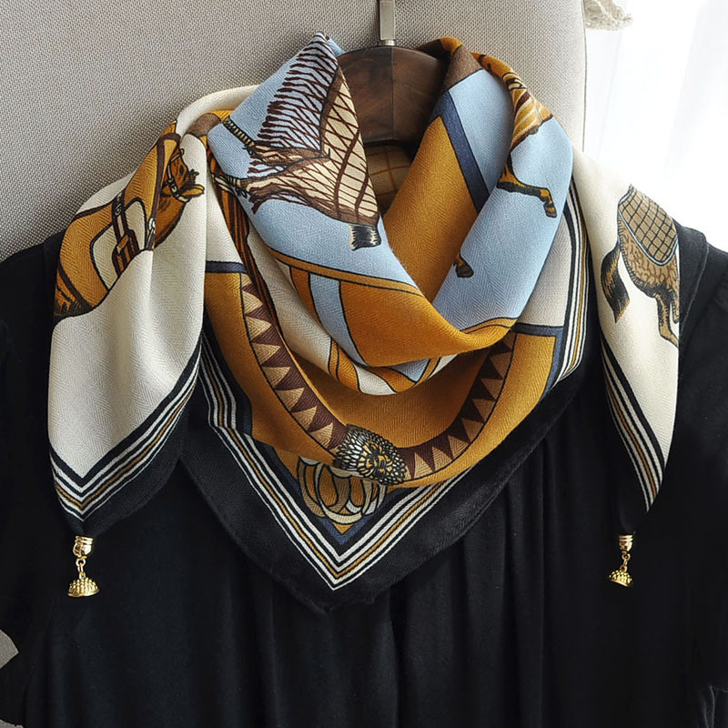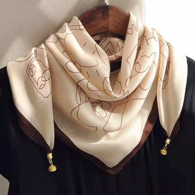 韩风磁吸扣丝巾女薄款方巾冬季吊坠围巾围脖装饰时尚百搭护颈批发