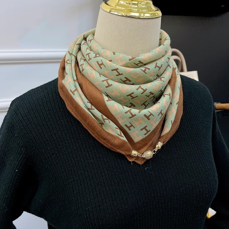 2025新型保温方巾磁気吸引ボタン三角スカーフ綿マフラー