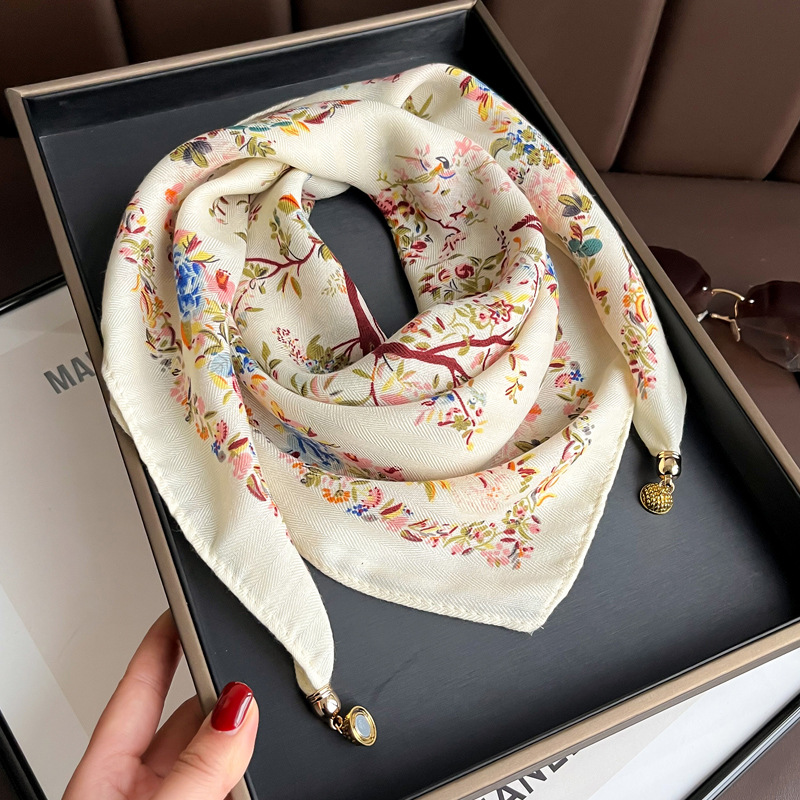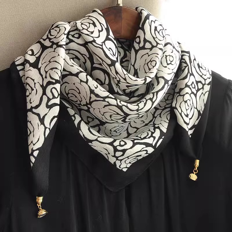 丝巾女春秋季2025新款磁吸扣绸缎方巾领巾高级感装饰三角围脖护颈
