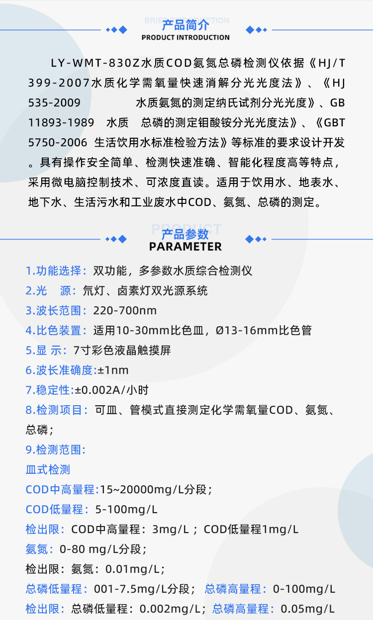 LY-WMT-830Z水質CODアンモニア性窒素総リン検出器路揚環境保護携帯型水質検出器