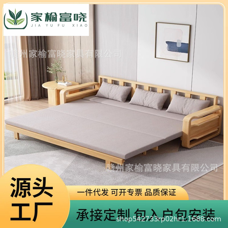 客間実木ソファーベッド小戸型シングル二人多機能実木ソファー伸縮可能折り畳み両用ソファー