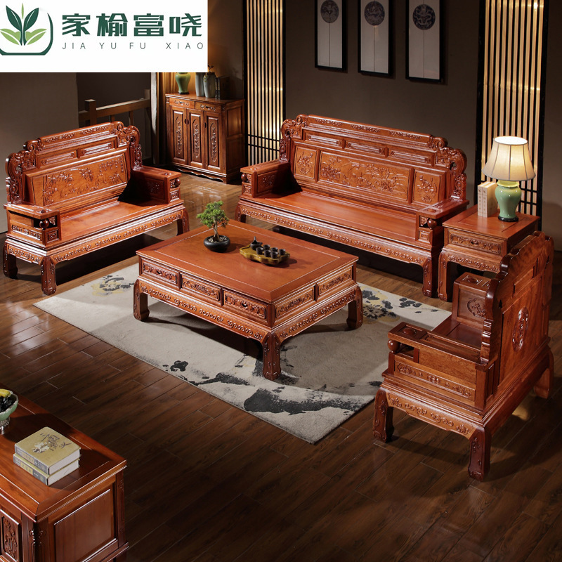 インドネシアの花梨木のソファーの組み合わせの客間の新しい中国式の赤い木の明清の古典の彫刻の別荘の客間は古風な家具をまねます。
