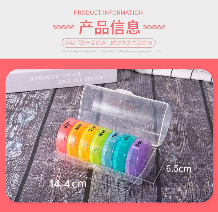 携帯ミニ7日間小薬箱携帯1週間7格プラスチック箱カラー透明錠剤分注箱現物