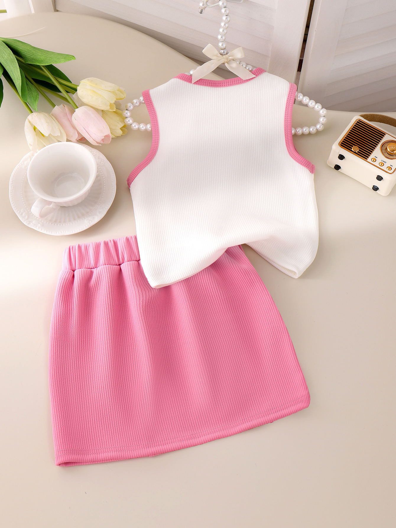 外贸欧美夏季新品可爱女童套装婴幼童蝴蝶结无袖背心+洋气裙裤