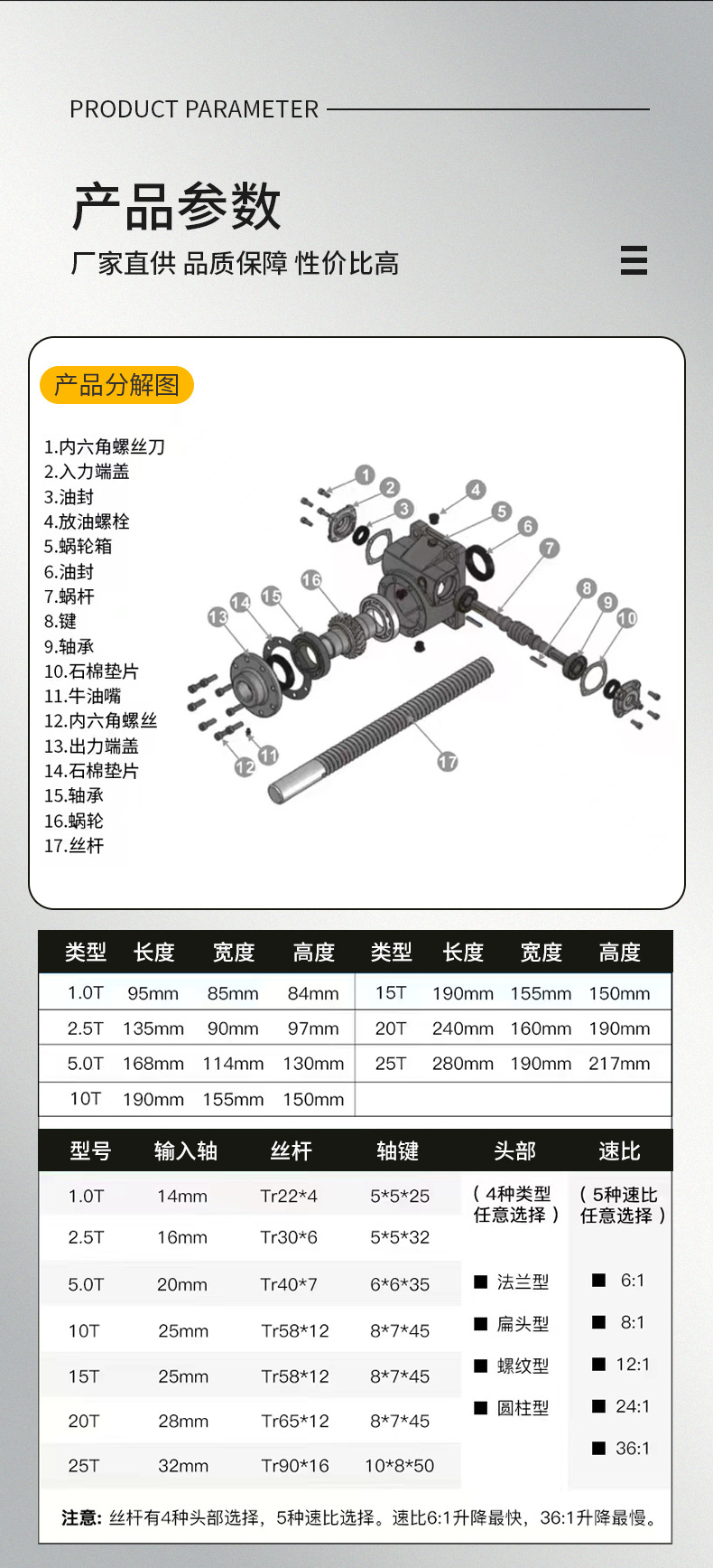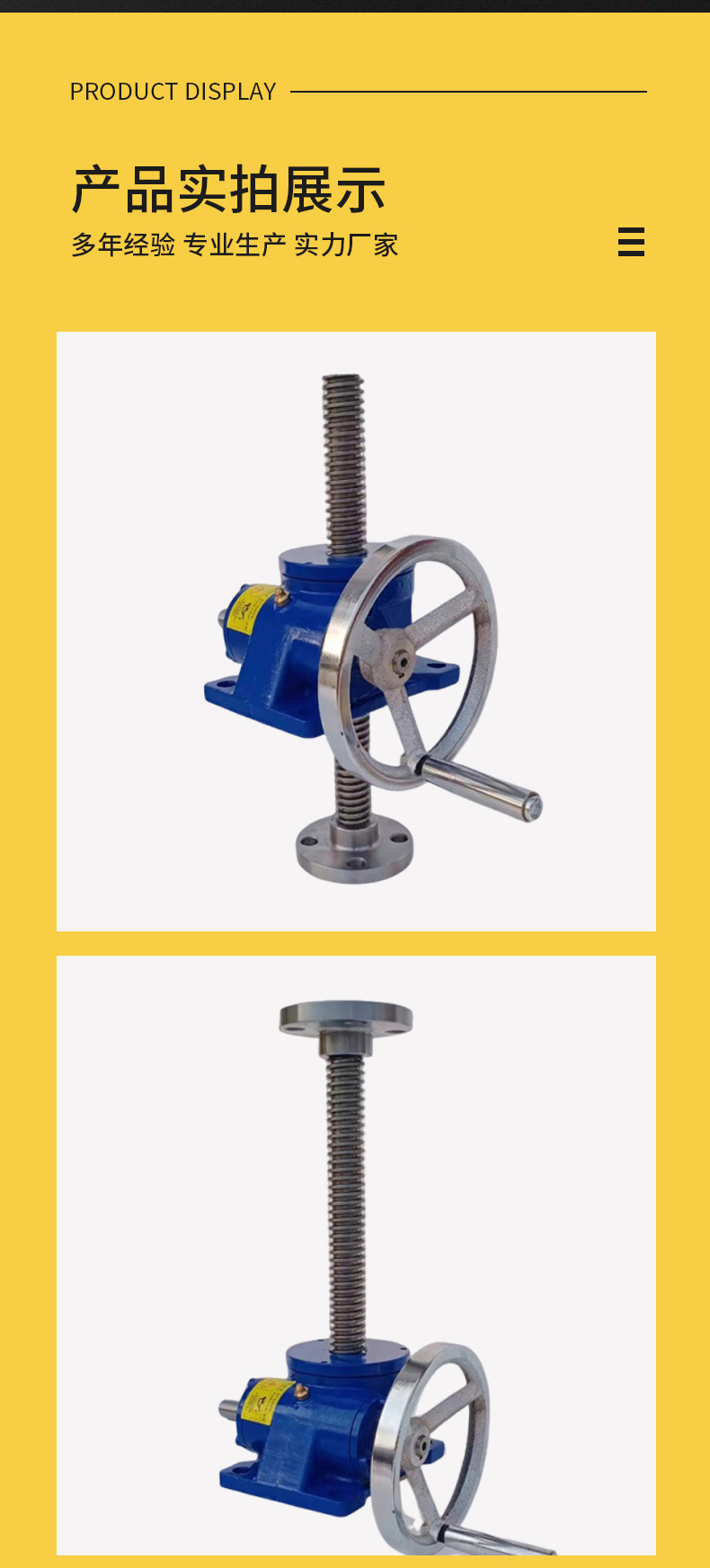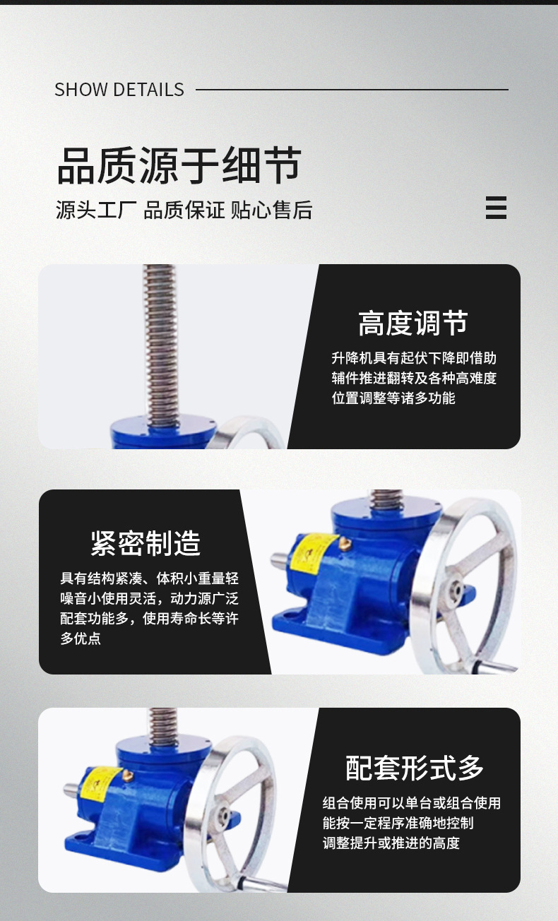 SWLシリーズのネジ式昇降装置、ウォームギア式昇降装置は、機械プラットフォームの昇降減速機として使用されます。