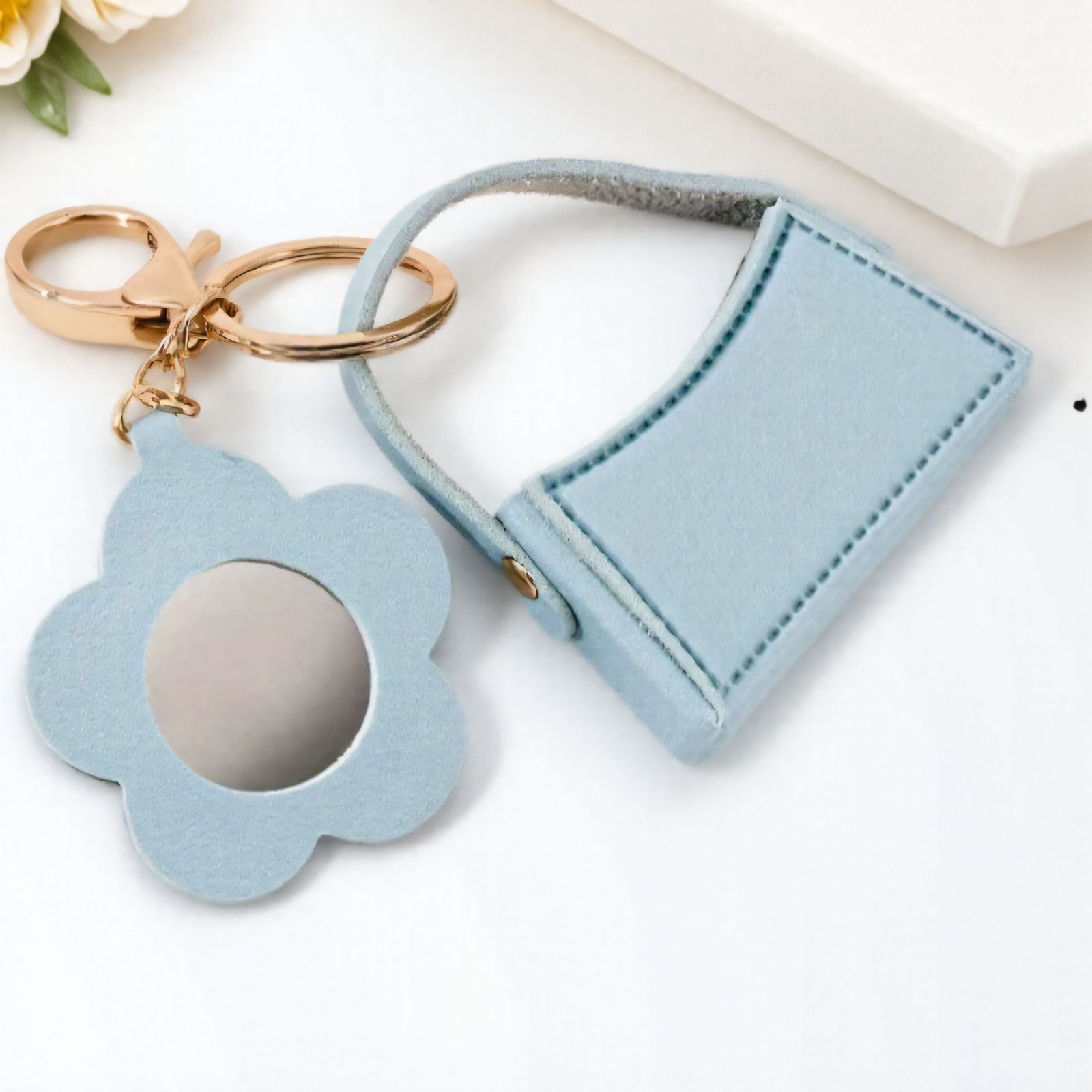 国境を越えたホットセール工場直販韓国スタイルの小さなカーブバッグキーホルダークリエイティブフラワーミラーキーホルダーpu小さなペンダント
