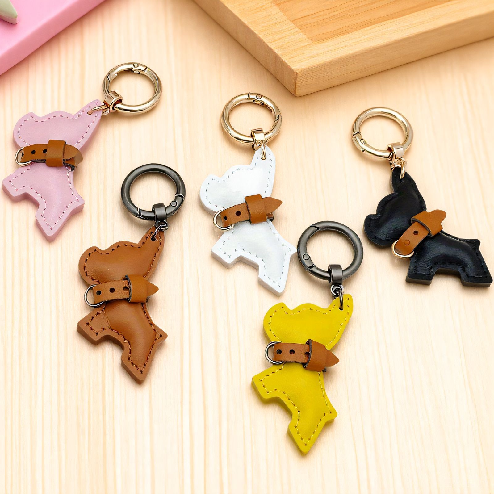 クリエイティブ手作り子犬革キーホルダーファッションかわいいフレンチブルドッグペンダント動物漫画バッグペンダントジュエリー