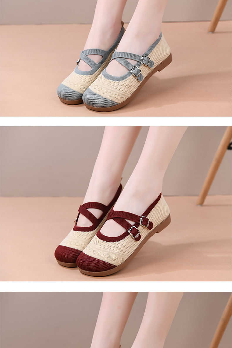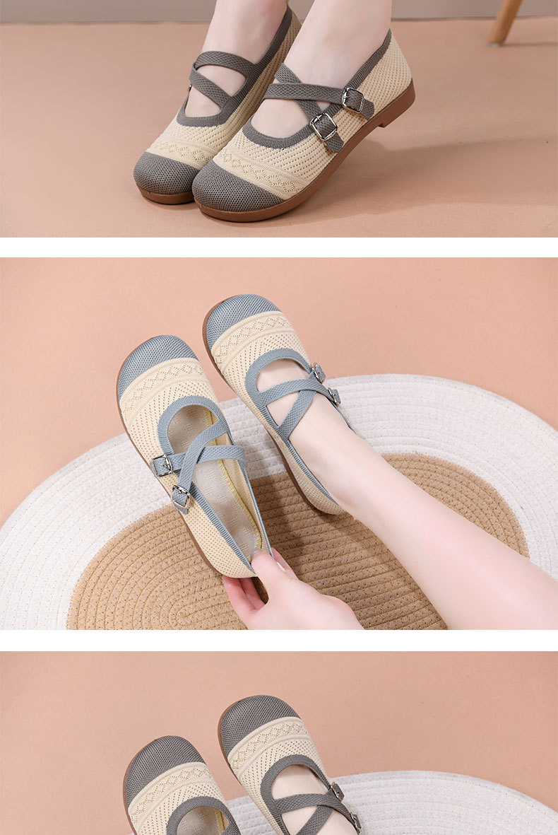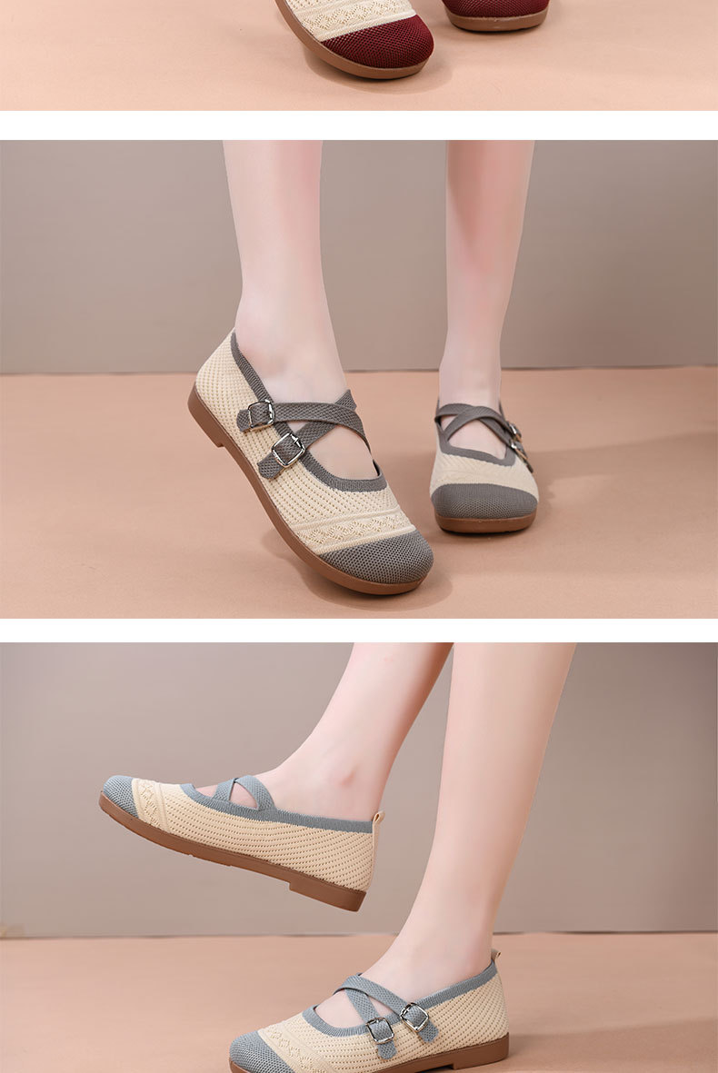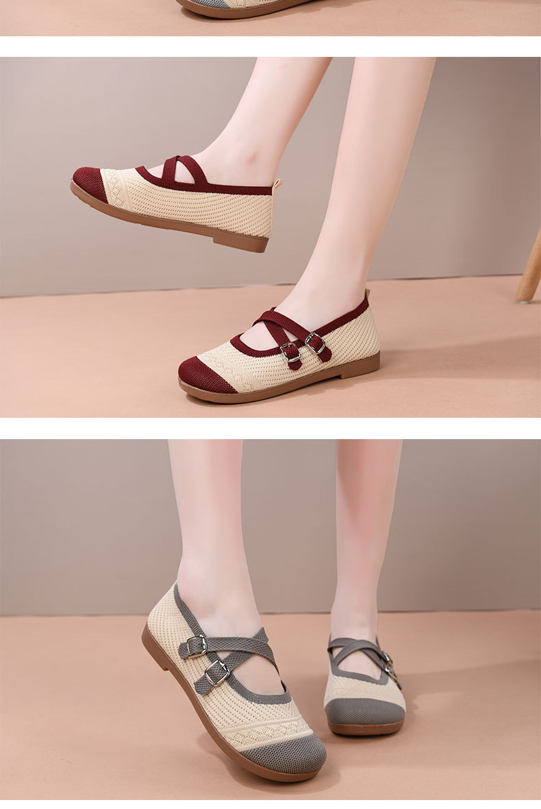 2025年夏新作 メリージェーン 快適レディースシューズ 浅口 エレガントな編み込みフラットシューズ ローカット バックル付き