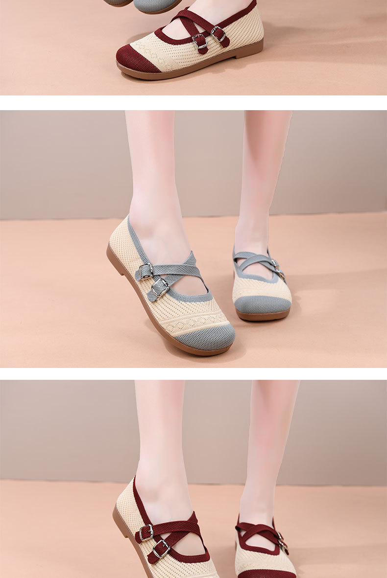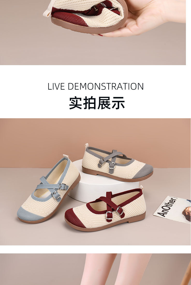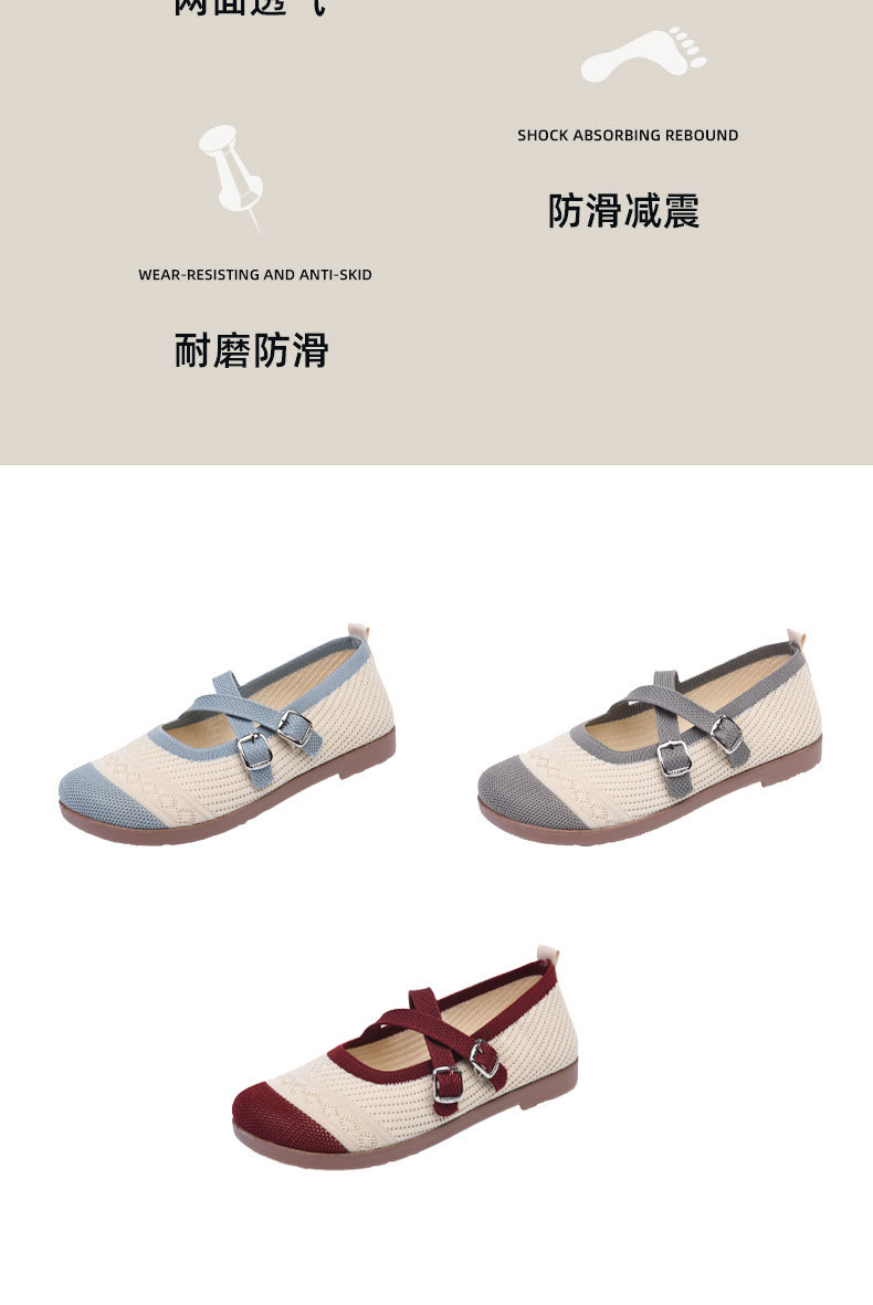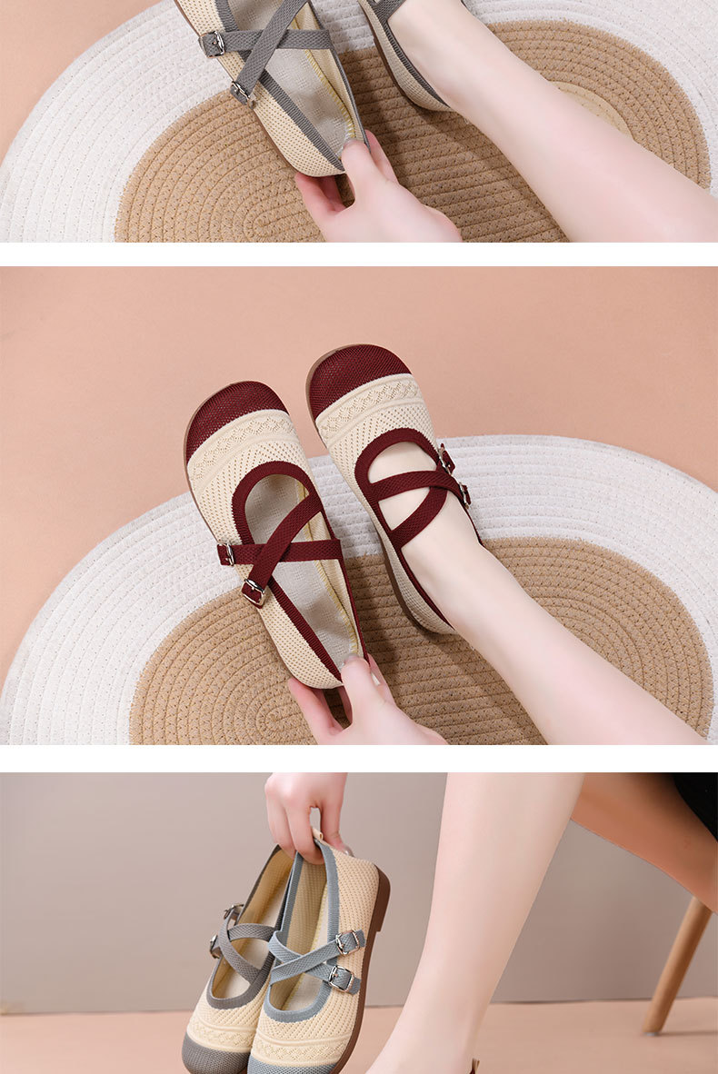 2025年夏新作 メリージェーン 快適レディースシューズ 浅口 エレガントな編み込みフラットシューズ ローカット バックル付き