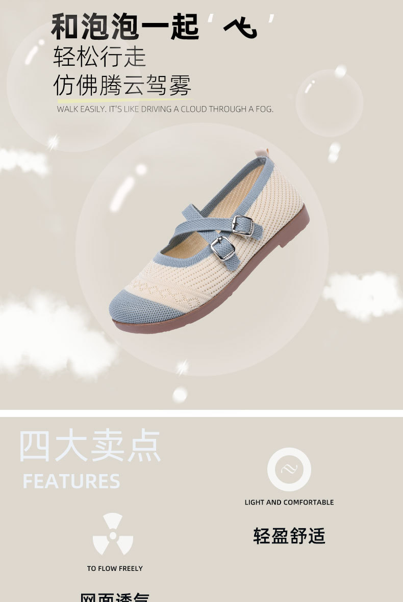 鞋子女新款春季新款飞织网面休闲女单鞋透气舒适中老年防滑妈妈鞋