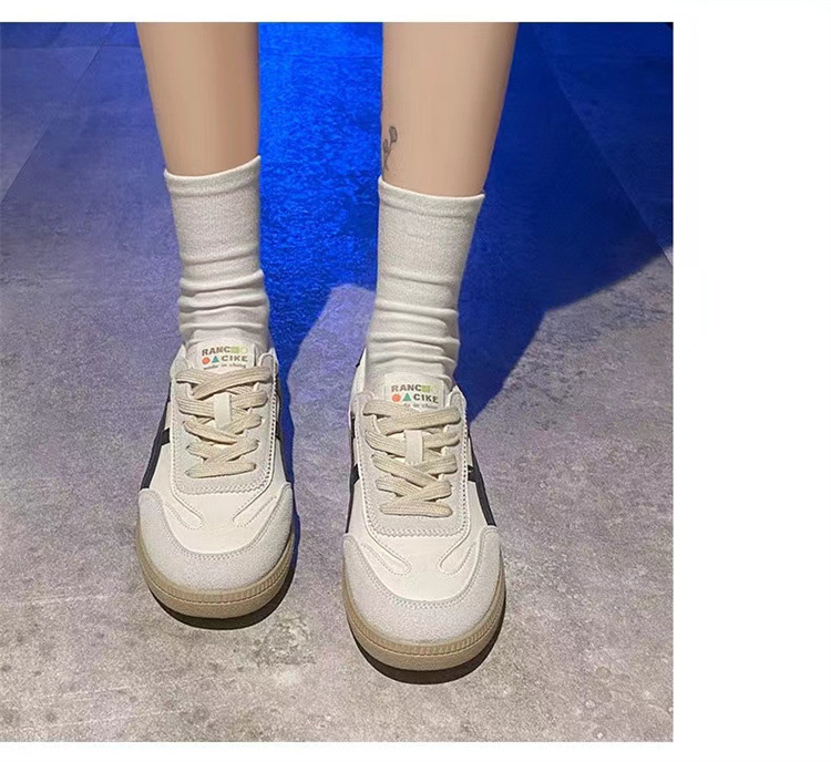 人気のレトロな女性用トレーニングシューズ 2025 秋の新しい多用途 ins スーパーホット厚底レースアップスポーツホワイトシューズ