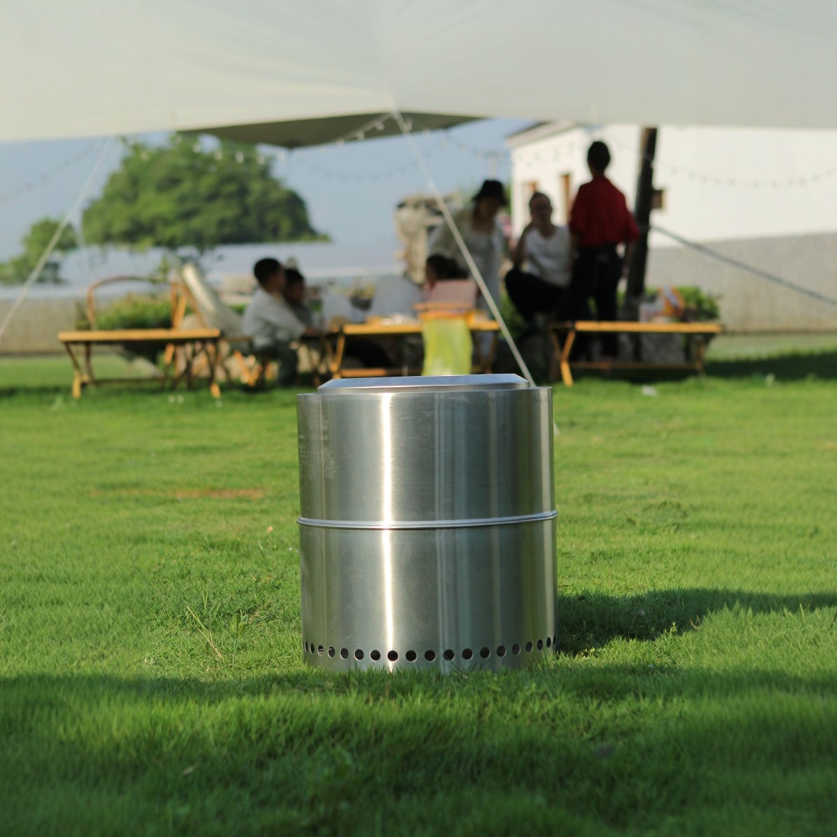 ホット販売ステンレスデスクトップ薪ストーブ庭ポータブル木炭無煙円筒暖炉バーベキュー炉屋外キャンプ