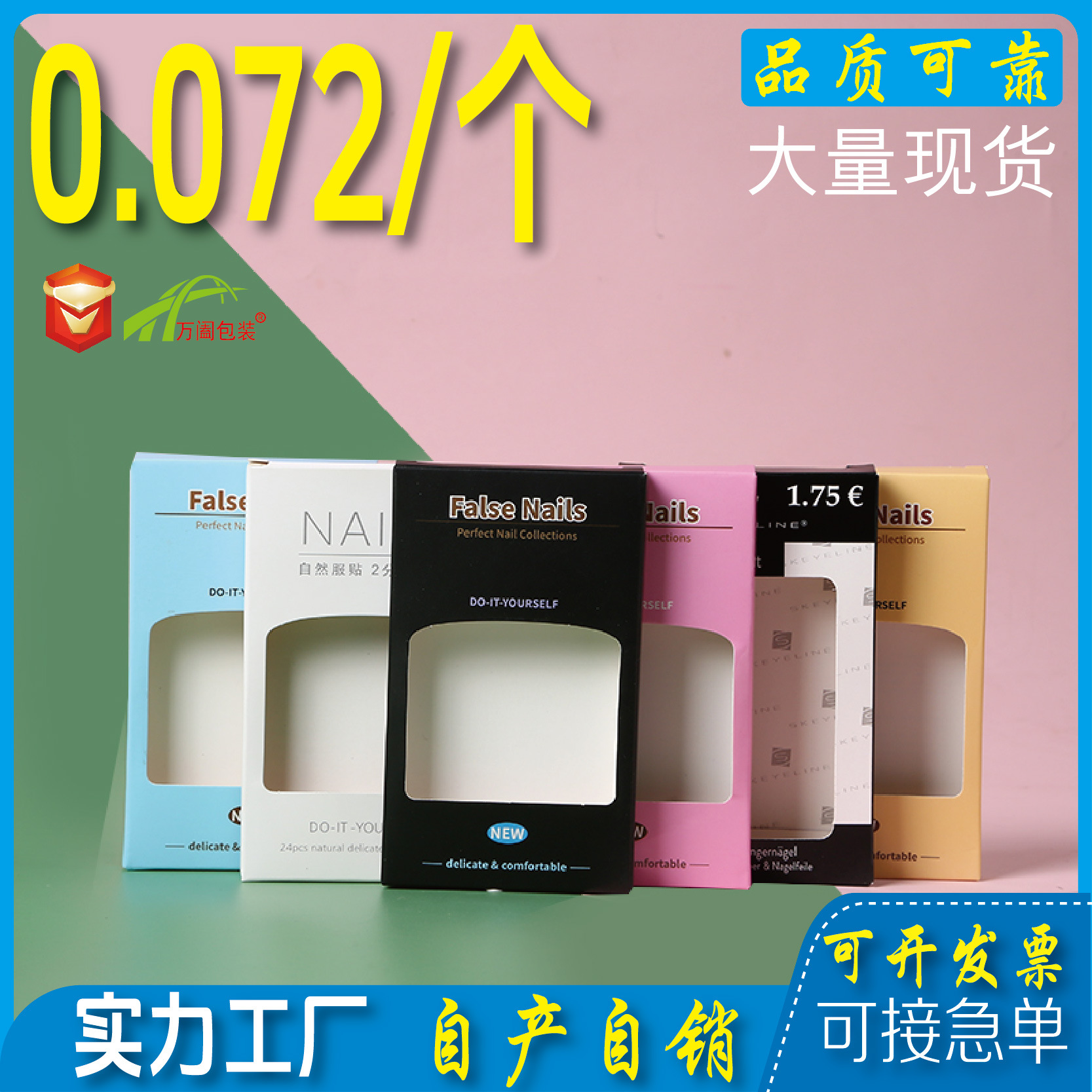 卸売りの通用現物は甲の包装箱を着てカラーのネイルの包装の紙の箱の偽の爪の箱を注文します。