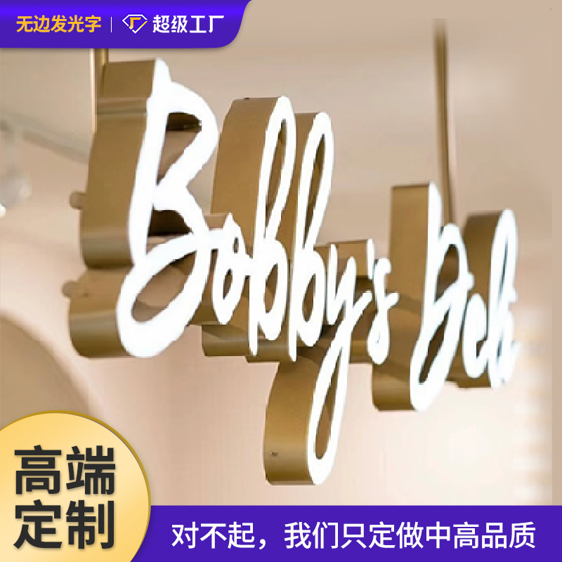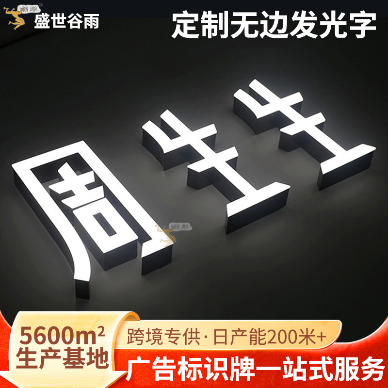 国境を越えたドア広告看板カスタムエッジレス発光文字ステンレス鋼金属発光文字アクリルクリエイティブロゴ