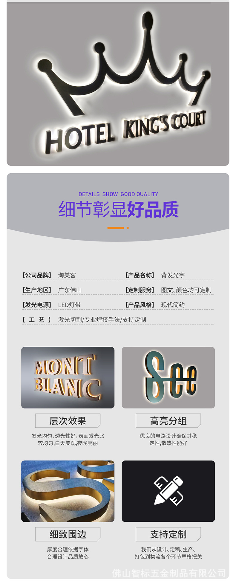 工厂直发不锈钢电镀金属实心字钛金字镜面烤漆仿古铜字无边发光字