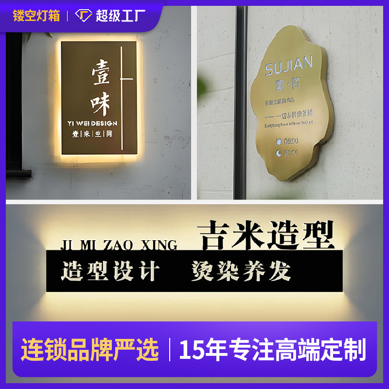 クロスボーダーアマゾン電気メッキ看板バックライト付きステンレス鋼看板カスタムメイド金属アクリル LED ライトボックス